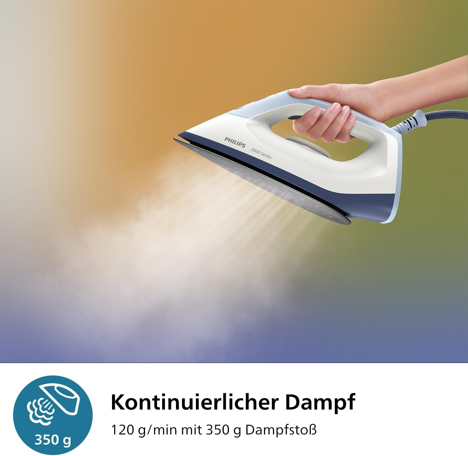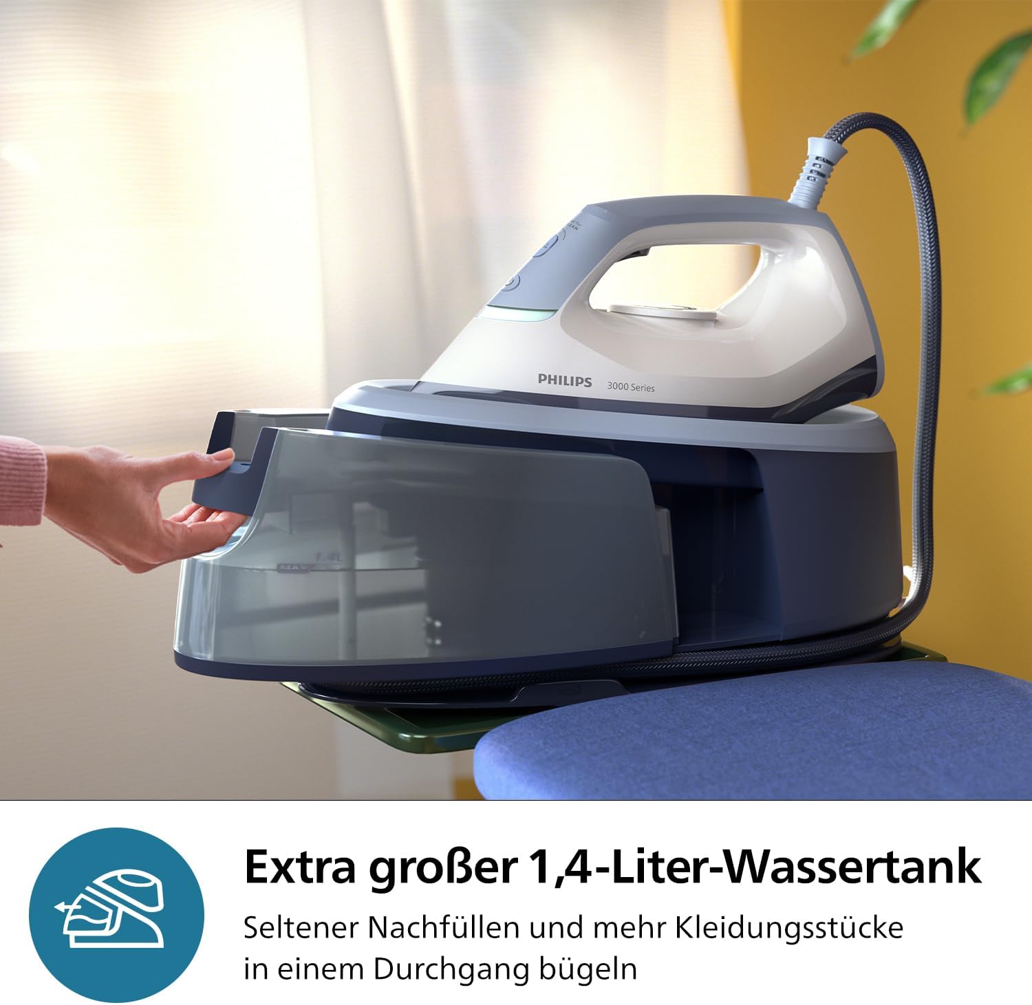 Philips Dampfbügelstation 3000 Series, 2400 W, 120 g/min Dauerdampf, 350 g Dampfstoß, schnell und leistungsstark, vertikaler Dampf, Keramiksohle, Deep Azur (PSG3000/20) | قیمت یورویی 100.94€