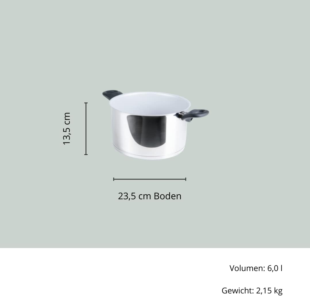 Genius Cerafit Steel Kochtopf 24cm + Glasdeckel - Edelstahl-Topf beschichtet mit 6l Fassungsvolumen | Nudeltopf für alle Herdarten & Induktion | Sandwichboden mit Aluminiumkern | قیمت یورویی 29.99€