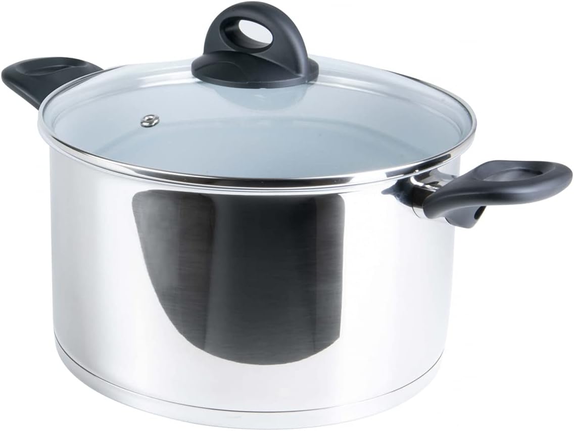 قابلمه استیل Genius Cerafit 24cm + درب شیشه ای - قابلمه استیل روکش شده با ظرفیت 6 لیتر | قابلمه پاستا برای انواع اجاق گاز و القایی | کف ساندویچی با هسته آلومینیومی