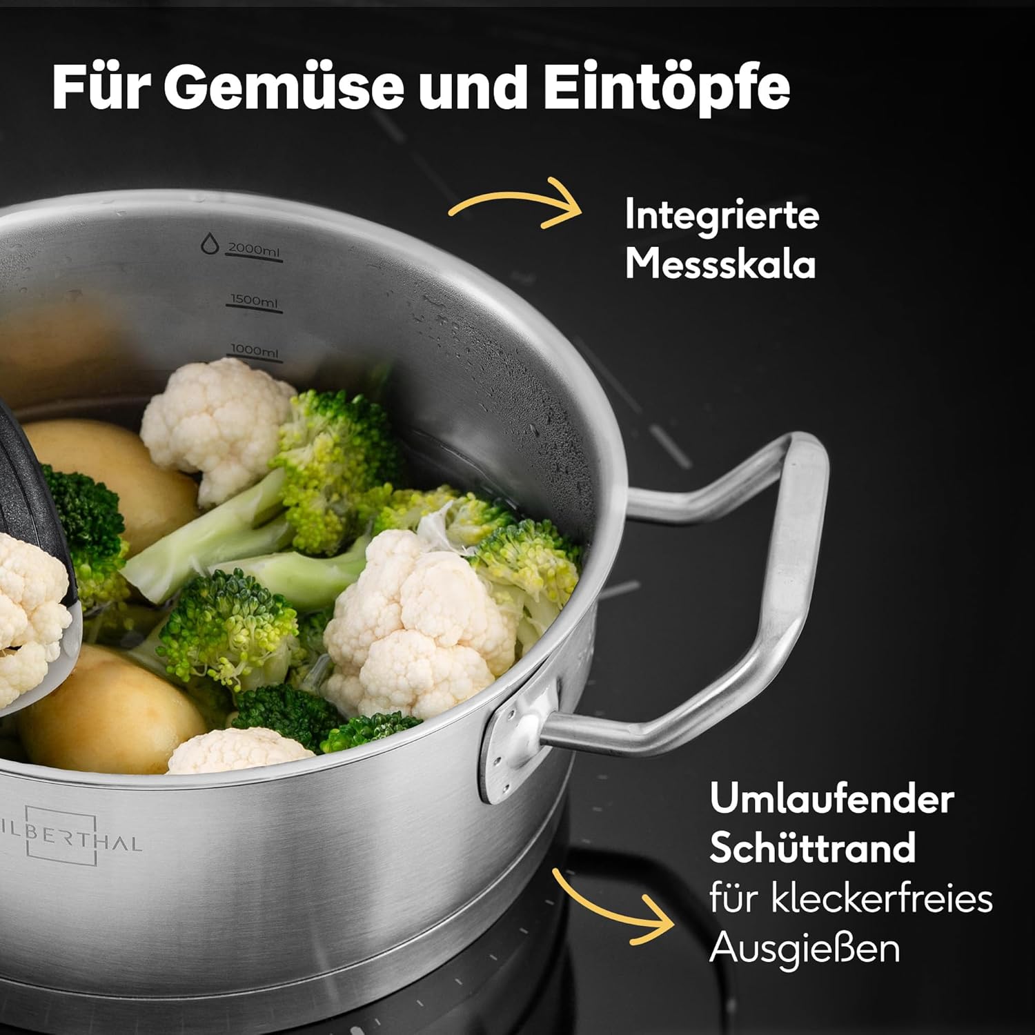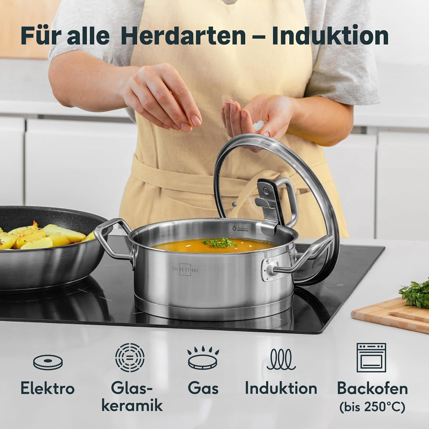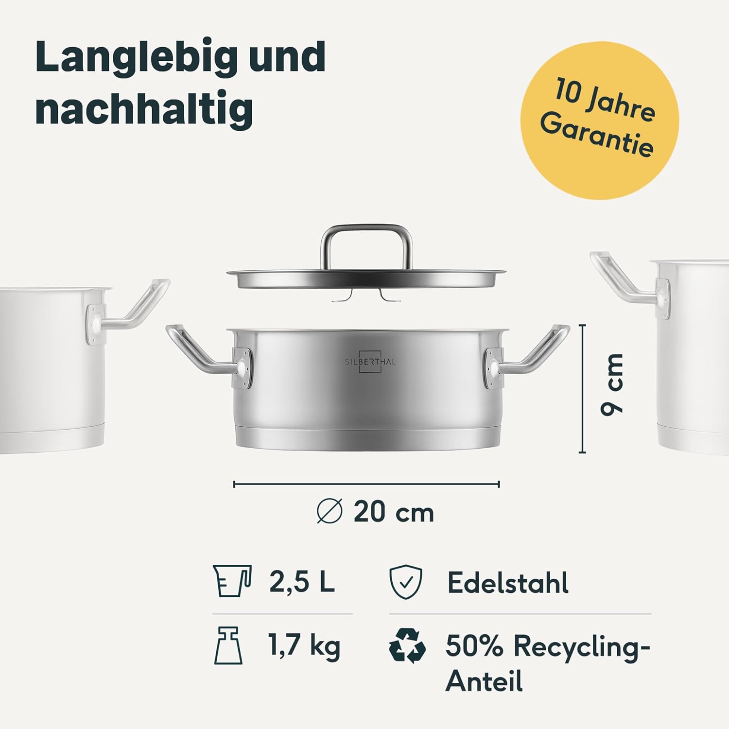 SILBERTHAL Kochtopf Induktion 20 cm - Edelstahl - 2,5L - Topf mit Deckel zum Einhängen - Für alle Herdarten - Ofenfest 20cm / 2,5l | قیمت یورویی 44.95€