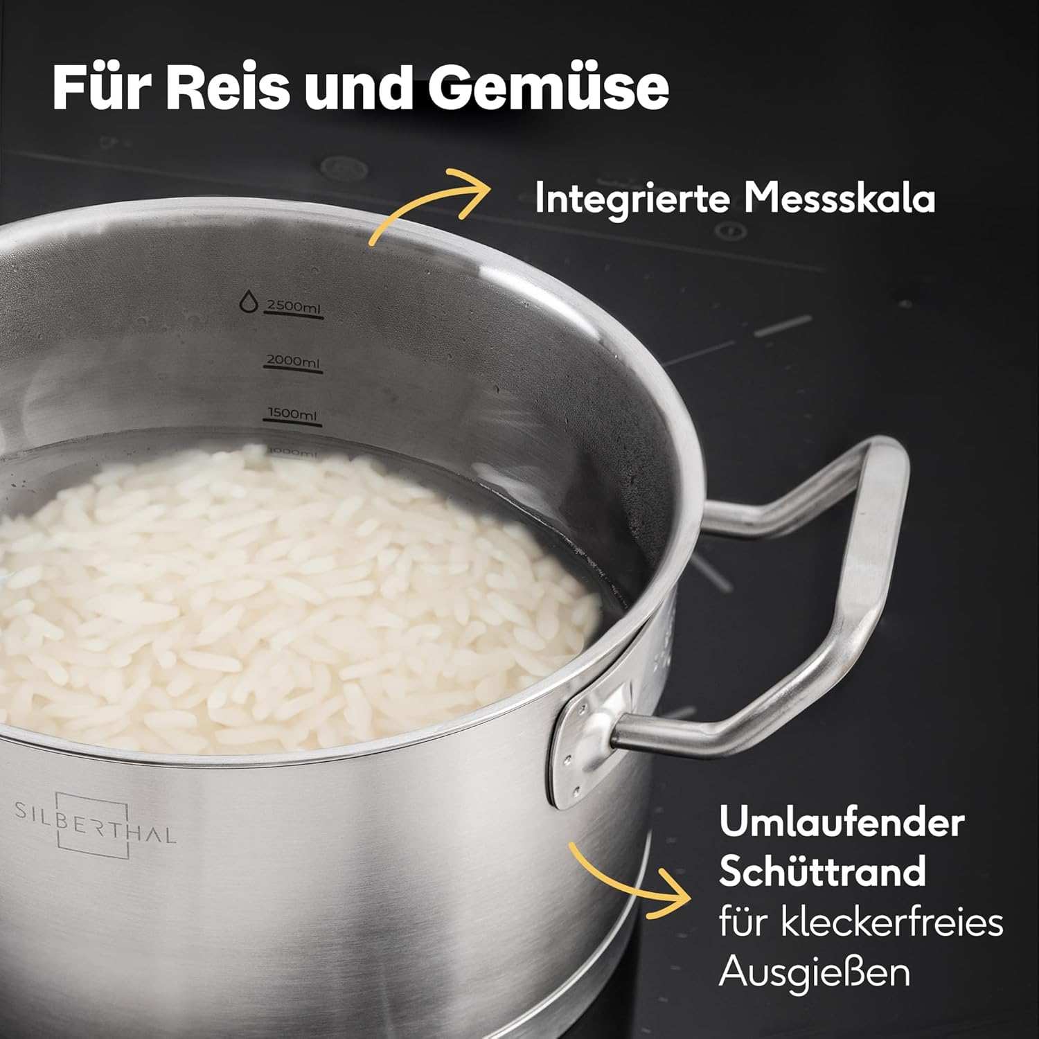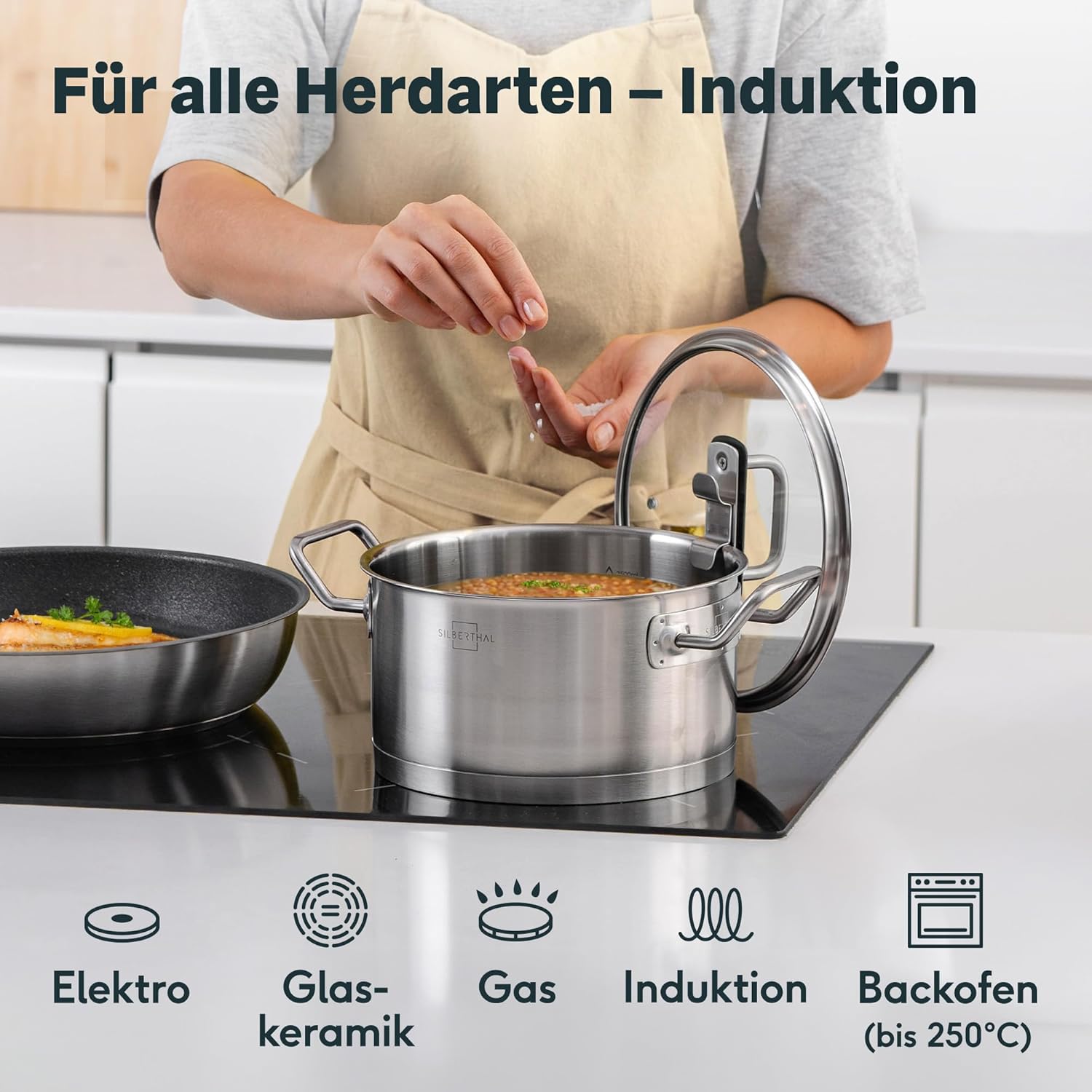 SILBERTHAL Kochtopf Induktion 20 cm - Edelstahl - 3,5L - Topf mit Deckel zum Einhängen - Für alle Herdarten - Ofenfest 20cm / 3,5l | قیمت یورویی 49.95€