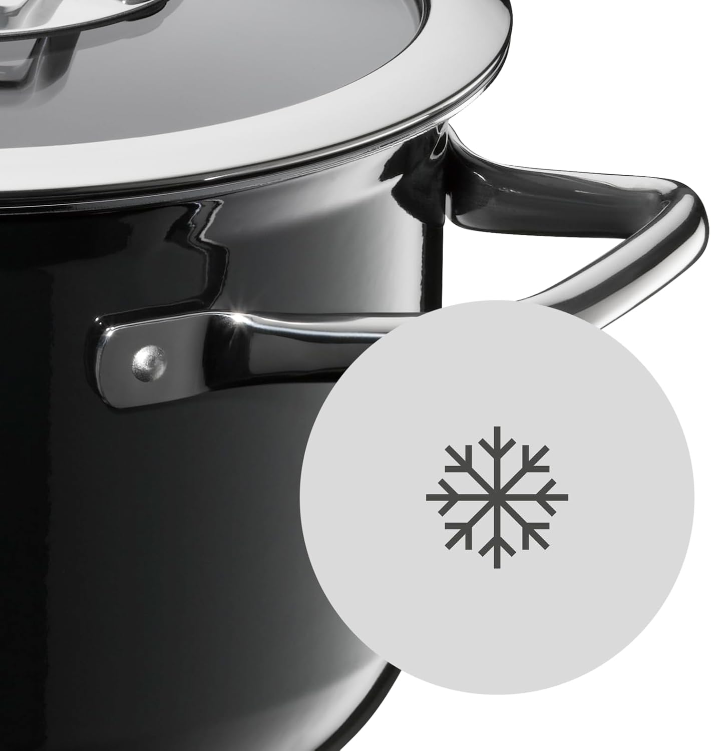 WMF Fusiontec Mineral Kochtopf groß 22 cm, Glasdeckel, Fleischtopf Induktion 4,7l, High-Tech Keramik, backofenfest, kratzfest, Made in Germany, spülmaschinengeeignet, schwarz لینک آمازون : https://www.amazon.de/dp/B0C1GK24T1?th=1&psc=1 محتویات: ۱ عدد قابلمه گوشت با درب ۲۲ سانتیمتر (حجم ۴.۷ لیتر، ارتفاع ۲۰ سانتیمتر) - شماره کالا: ۰۵۱۶۱۲۵۲۹۰ جنس: FUSIONTEC، یک سوپرآلیاژ ساخته شده از مواد بادوام و ضد خوردگی (معدنی طبیعی). فولاد ضد زنگ. قابل شستشو در ماشین ظرفشویی. مقاوم در برابر حرارت تا ۲۵۰ درجه سانتیگراد. ساخت آلمان این قابلمه، بدون علامت اندازهگیری، میتواند روی انواع اجاقهای معمولی: القایی، گازی، برقی و سرامیکی استفاده شود. به لطف توزیع بهینه گرما، هیچ چیزی نمیسوزد. مناسب برای پخت و پز، بخارپز کردن، آبپز کردن و سفید کردن، لبه پهن برای ریختن بدون چکه، دستههای توخالی کاهنده حرارت