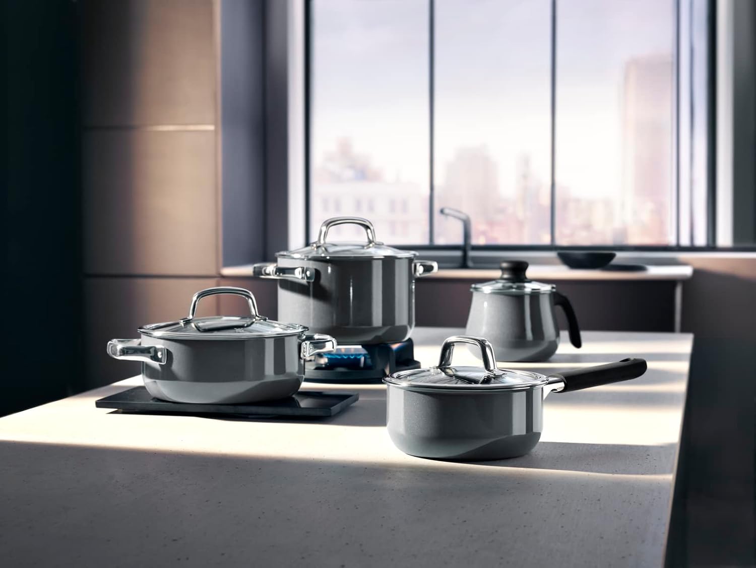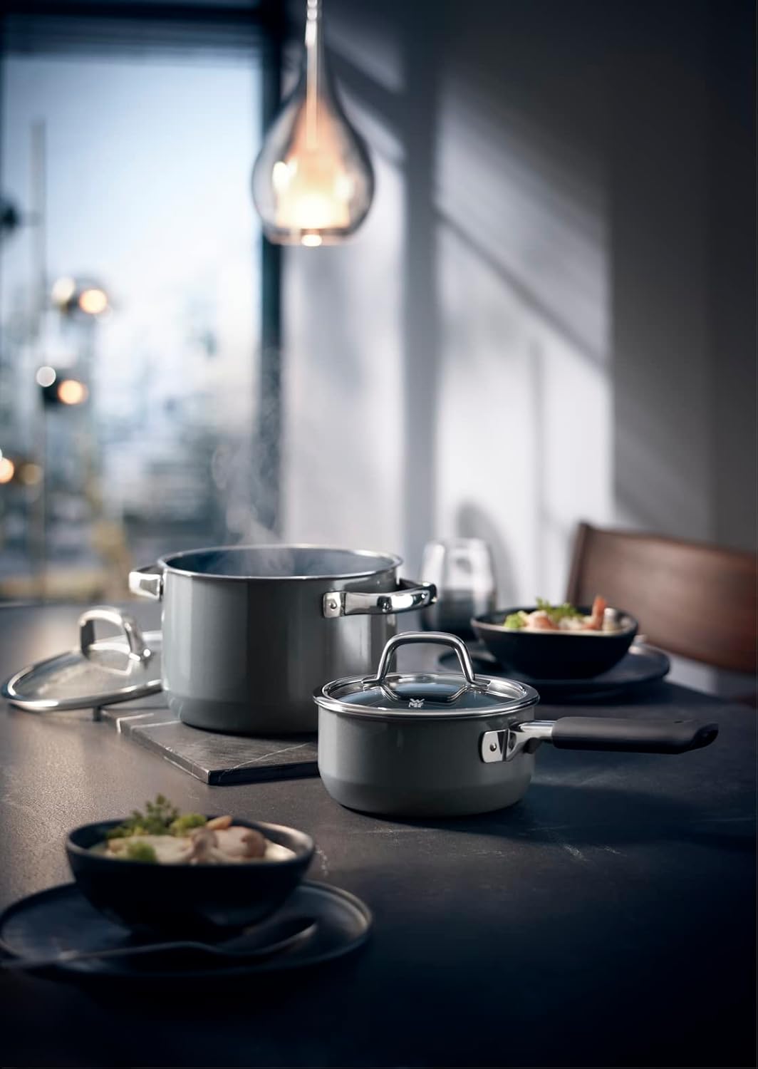 قابلمه بزرگ معدنی WMF Fusiontec، 20 سانتیمتر، سازگار با اجاق القایی، 3.7 لیتر، درب شیشهای، سرامیک پیشرفته، ضد خش، خاکستری 20 سانتیمتر، خاکستری