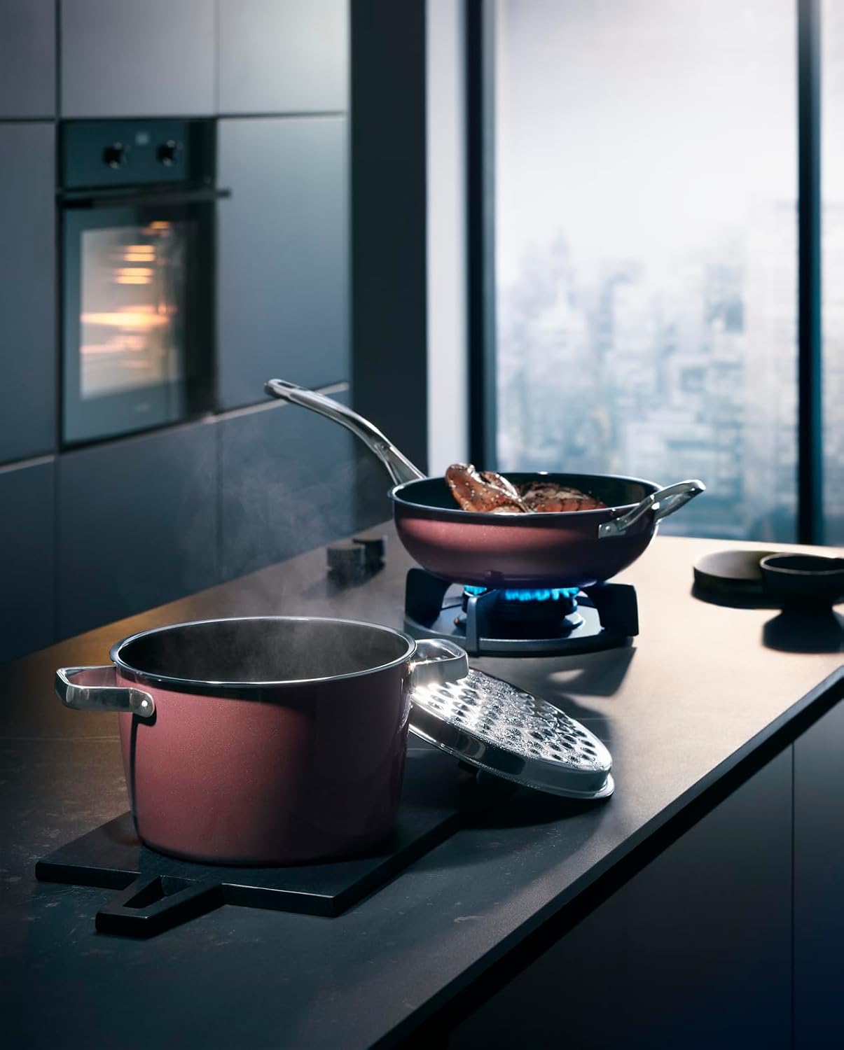 قابلمه بزرگ معطر WMF Fusiontec، 24 سانتیمتر، درب با دانههای میعان، قابلمه القایی 6.2 لیتری، سرامیک پیشرفته، قابل چیدن روی هم، ضد خش، قرمز، قابلمه 6.2 لیتری قرمز