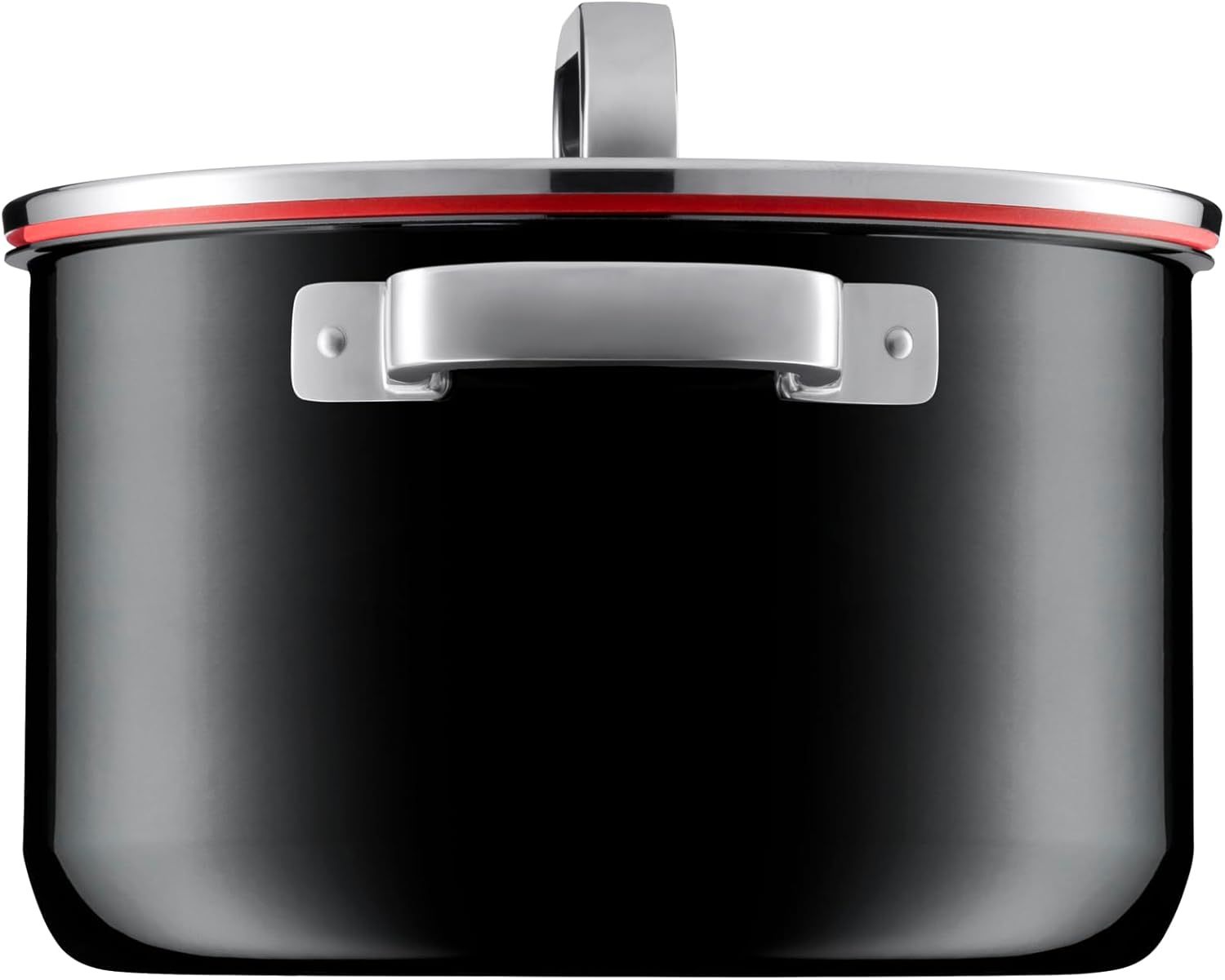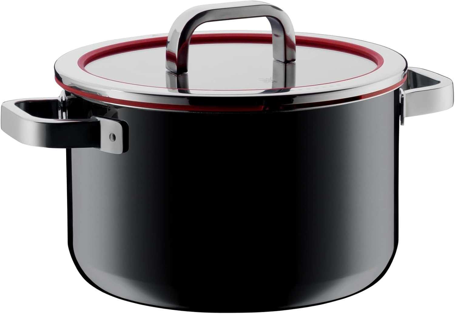 قابلمه بزرگ کاربردی WMF Fusiontec، 24 سانتیمتر، درب شیشهای با قابلیت ریختن، قابلمه القایی 6.4 لیتری، سرامیک پیشرفته، ضد خش، مشکی، قطر 24 سانتیمتر