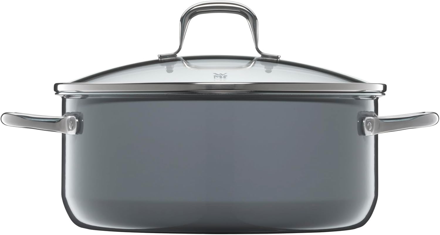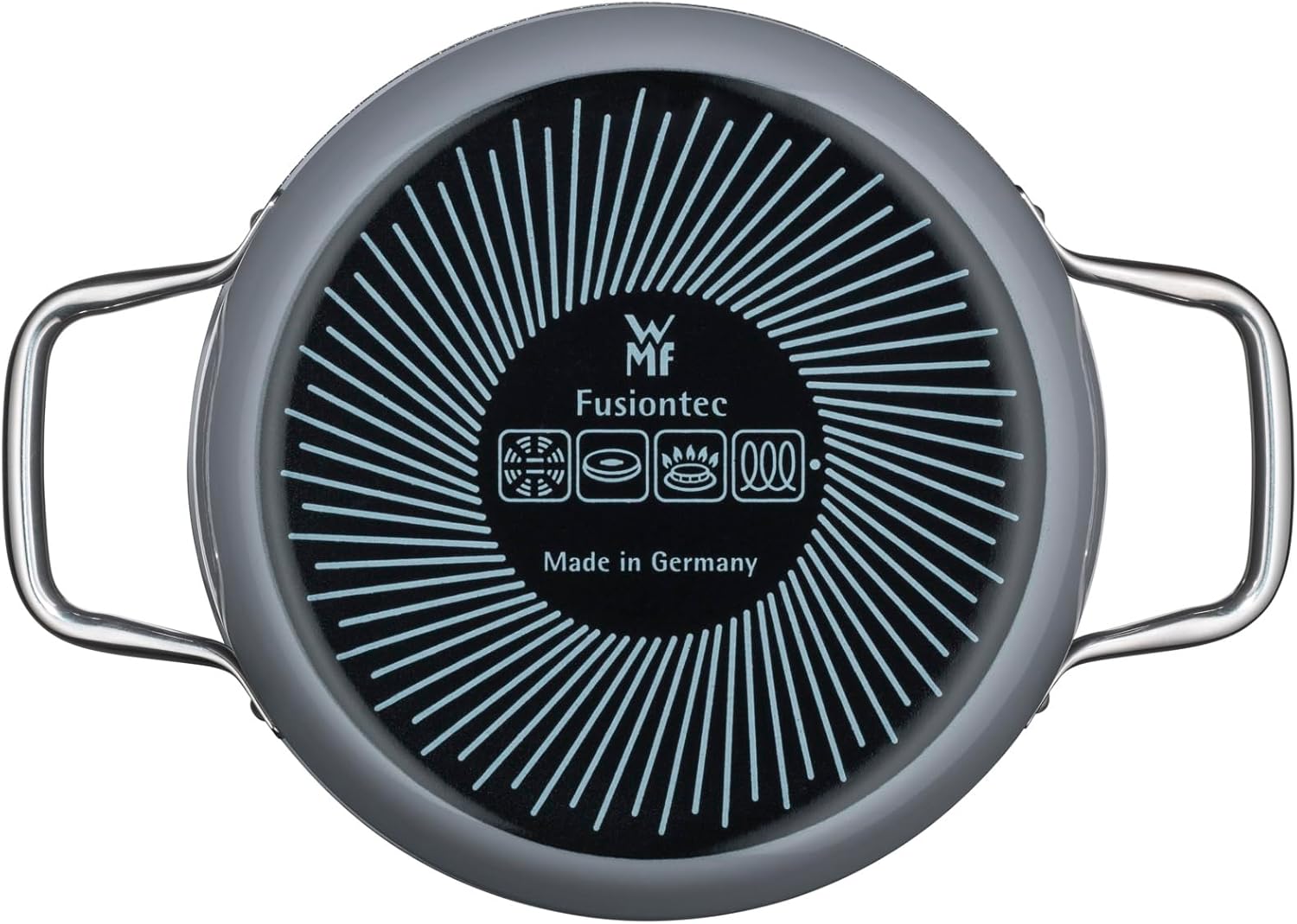 قابلمه بزرگ WMF Fusiontec Essential، 20 سانتیمتر، درب شیشهای، سازگار با اجاق القایی، 2.4 لیتر، سرامیک پیشرفته، ضد خش، بدون روکش، خاکستری، ساخت آلمان
