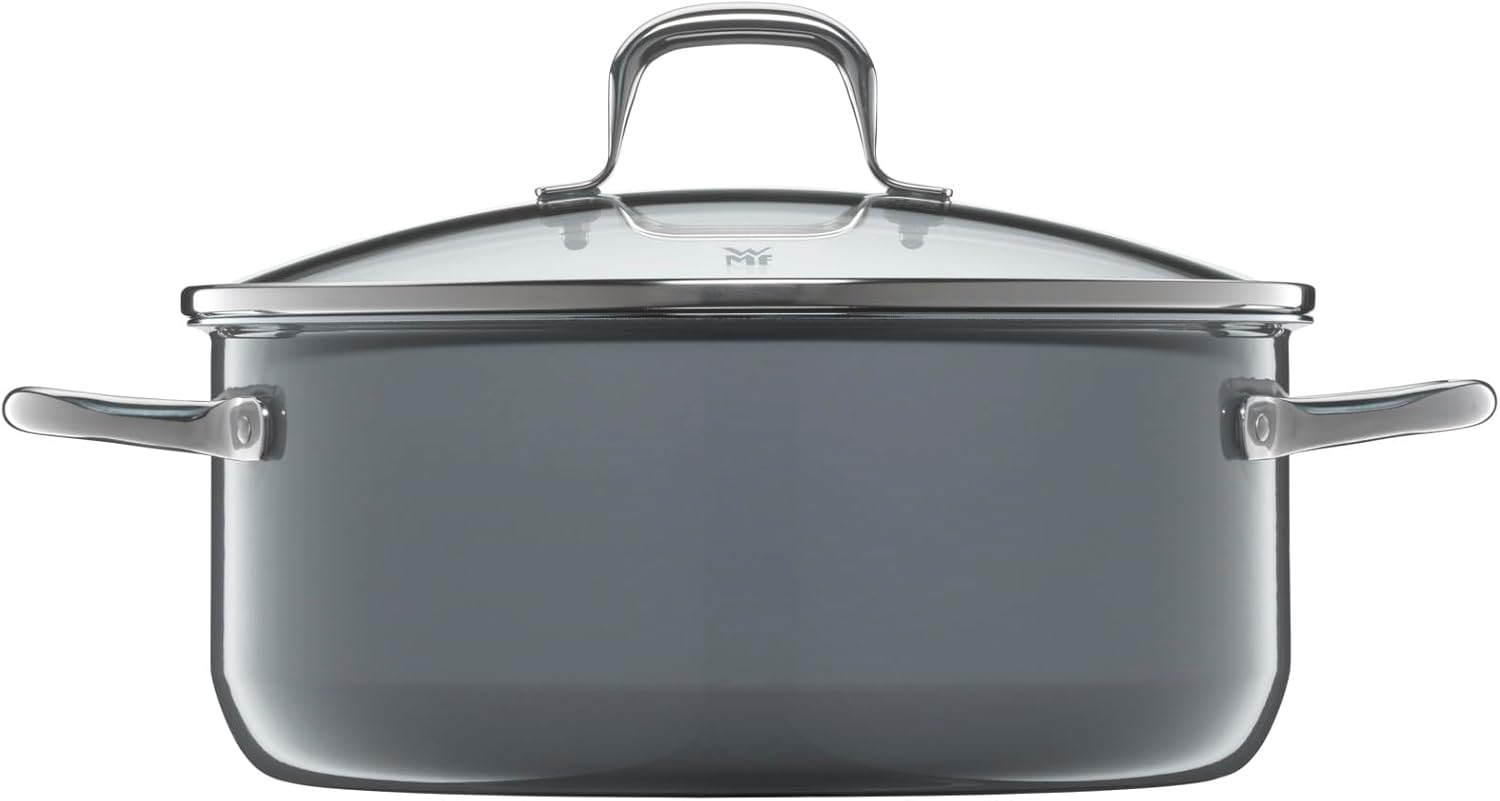 قابلمه بزرگ WMF Fusiontec Essential، 24 سانتیمتر، درب شیشهای، سازگار با اجاق القایی، 4.4 لیتر، سرامیک پیشرفته، ضد خش، بدون روکش، خاکستری، ساخت آلمان