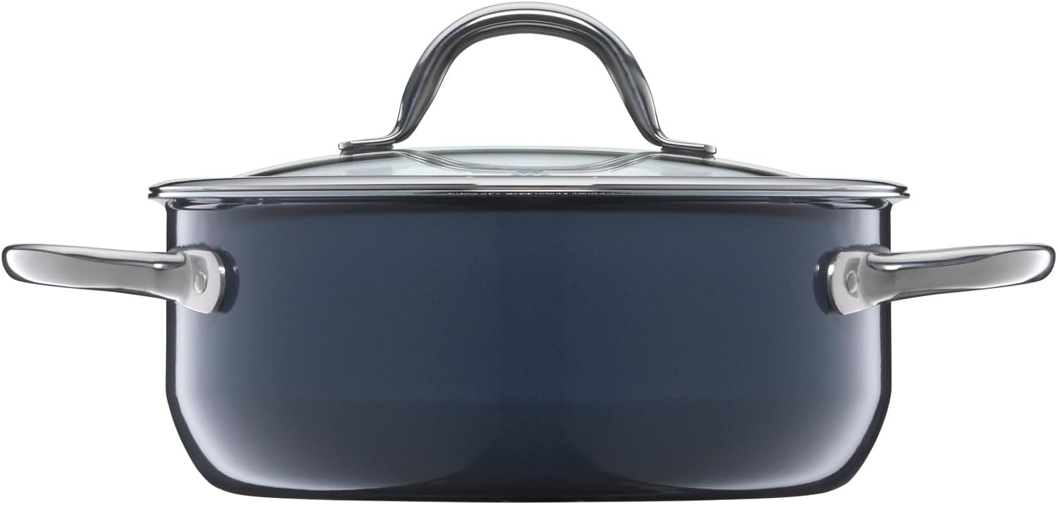 WMF Fusiontec Inspire Kochtopf groß, 20 cm, Glasdeckel, Bratentopf Induktion, 2,4l, High-Tech Keramik, kratzfest, unbeschichtet, dunkelblau, Made in Germany | قیمت یورویی 76.45€