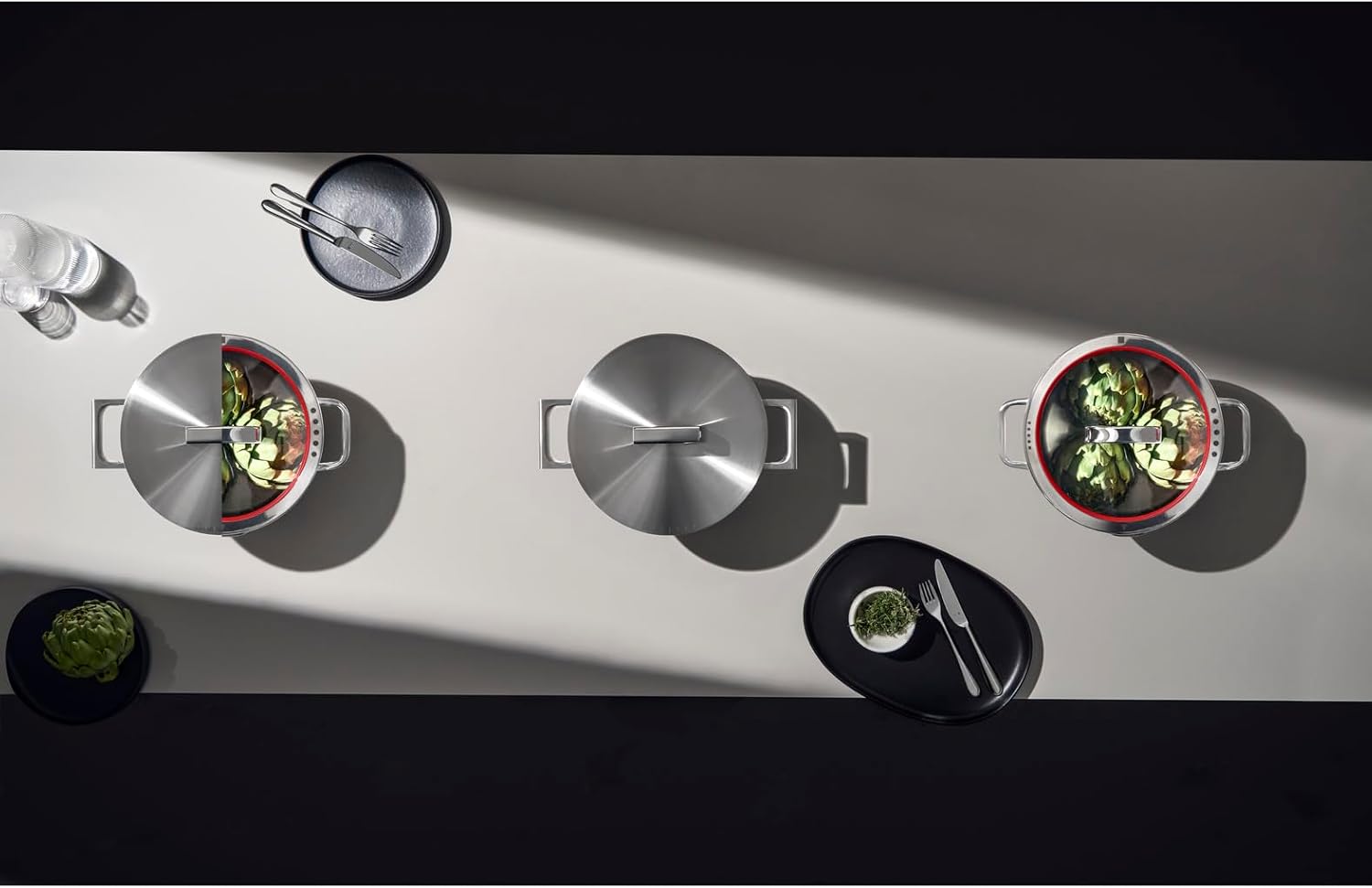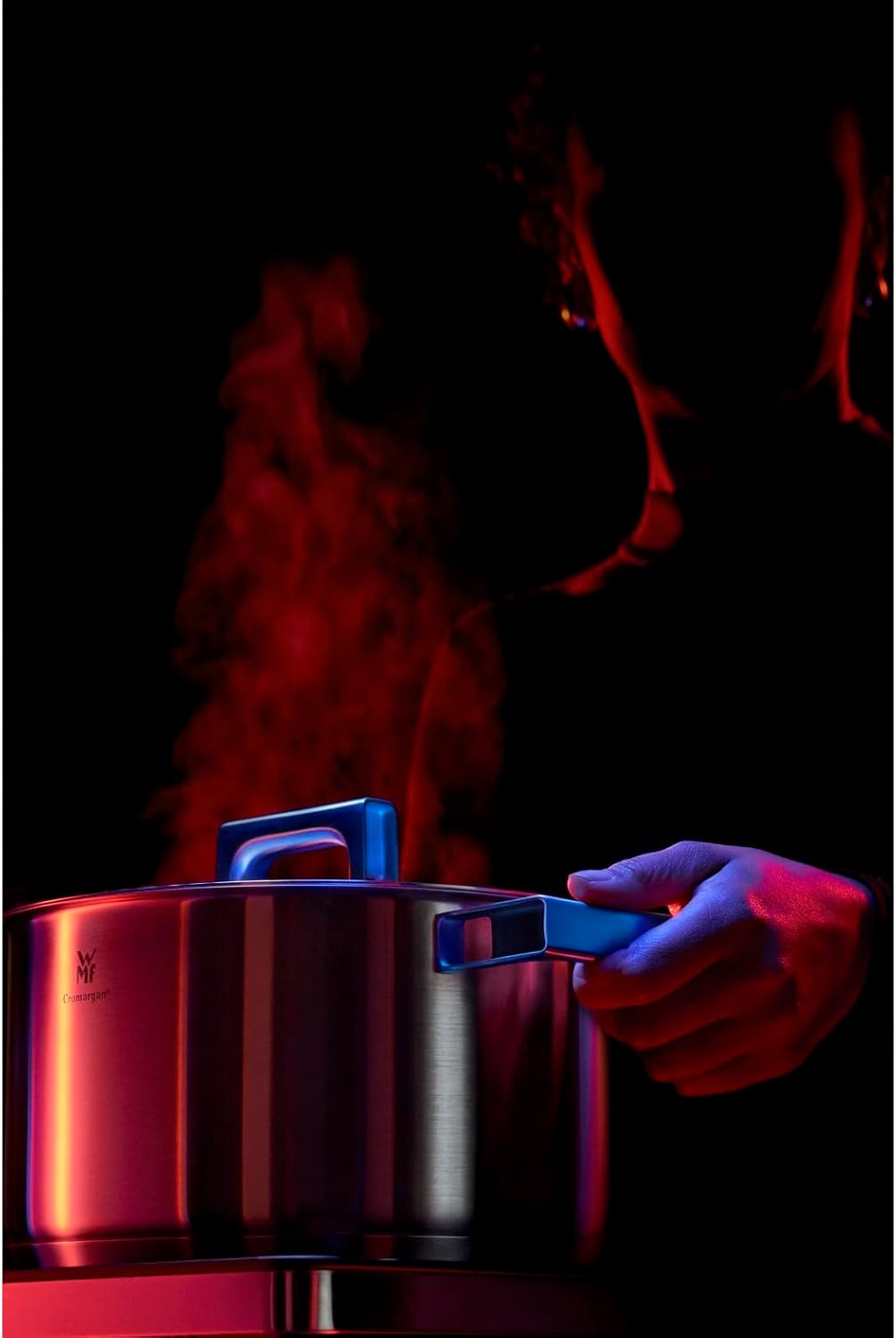 قابلمه بزرگ WMF Ultimate Cool، 24 سانتیمتر، درب استیل ضد زنگ، قابلمه القایی بلند 5.7 لیتر، روکش مات استیل ضد زنگ Cromargan، دستههای کاهنده حرارت، قابلمه القایی با ترازوی داخلی، قابل شستشو در ماشین ظرفشویی