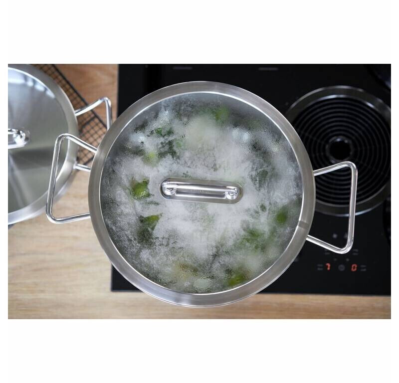 قابلمه zwilling Pro Induktion Fleischtopf، ترکیبی از طراحی مدرن و کیفیت برتر است که برای آشپزهای حرفهای و خانگی طراحی شده است. این قابلمه از استیل ضد زنگ 18/10 ساخته شده که مقاومت بالا در برابر زنگزدگی و حرارت را تضمین میکند.