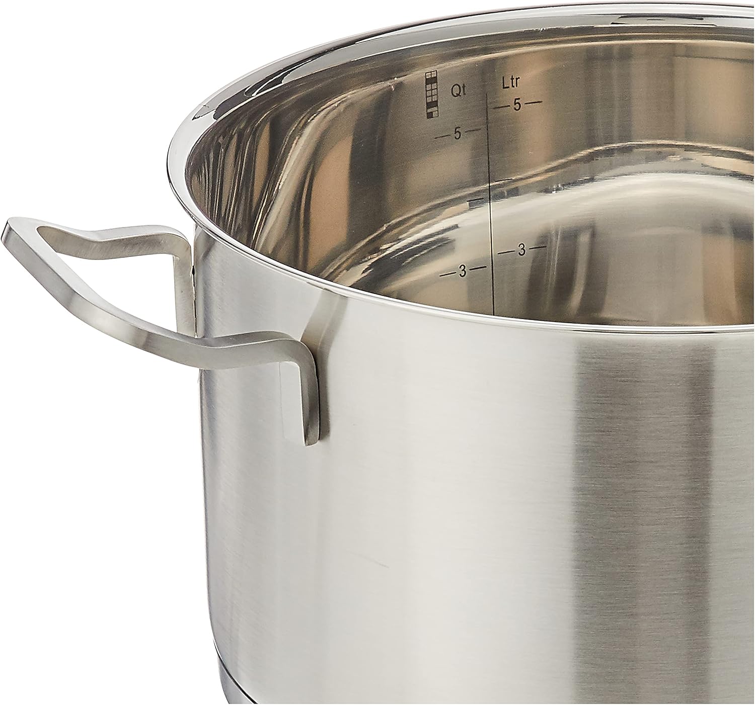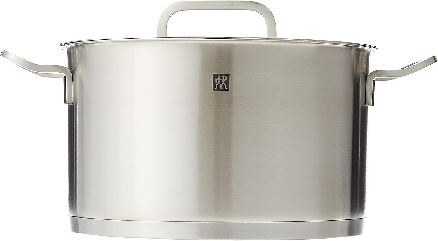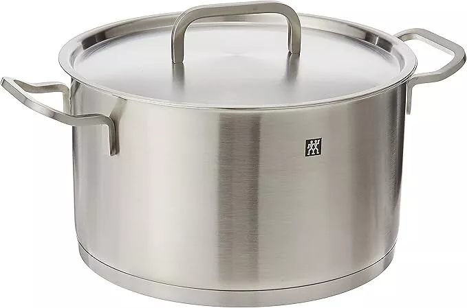 قابلمه zwilling Kochtopf Moment با قطر 24 سانتیمتر و ظرفیت 5.5 لیتر از استیل ضد زنگ ساخته شده است. این قابلمه دارای پایه چندلایه، درب مقاوم و دستههای ارگونومیک بوده و برای انواع اجاقها از جمله القایی مناسب است.