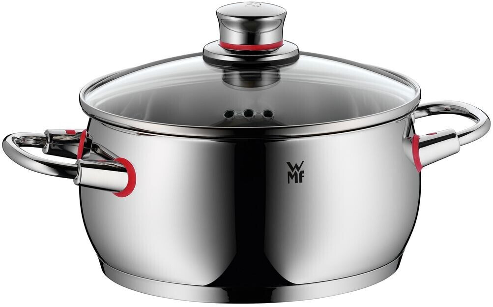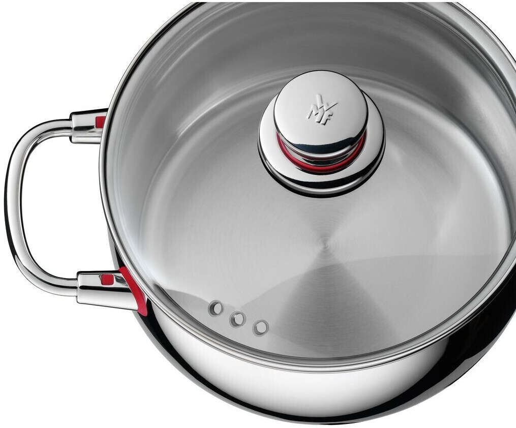 WMF Quality One قابلمه 20 سانتیمتر، ساختهشده از استیل ضدزنگ Cromargan، دارای کف TransTherm برای توزیع یکنواخت حرارت.
