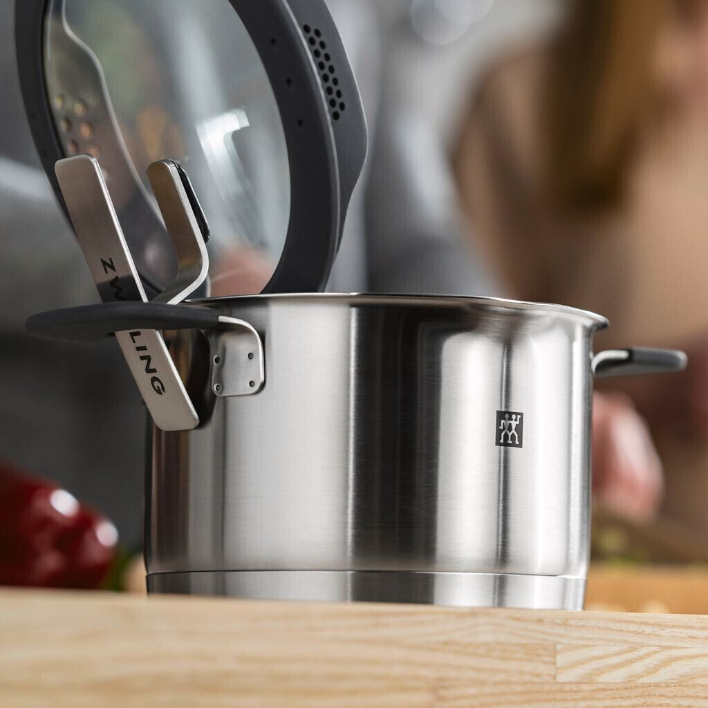 قابلمه استیل zwilling Simplify با طراحی حرفهای و قطر 20 سانتیمتر، از استیل ضد زنگ 18/10 ساخته شده است. دارای درب چندمنظوره، پایه چندلایه برای توزیع حرارت یکنواخت و دستههای عایق حرارت. مناسب برای انواع اجاقها از جمله القایی و قابل شستشو در ماشین ظرفشویی.