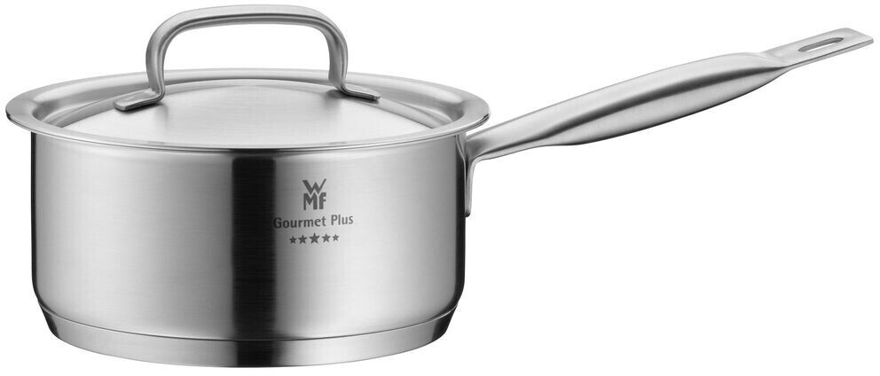 WMF Gourmet Plus قابلمه شیر جوش 16 سانتیمتر، دارای درب استیل مقاوم، ساختهشده از استیل ضدزنگ Cromargan، مجهز به کف TransTherm برای توزیع یکنواخت حرارت.