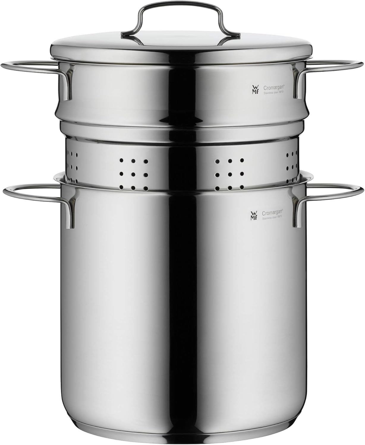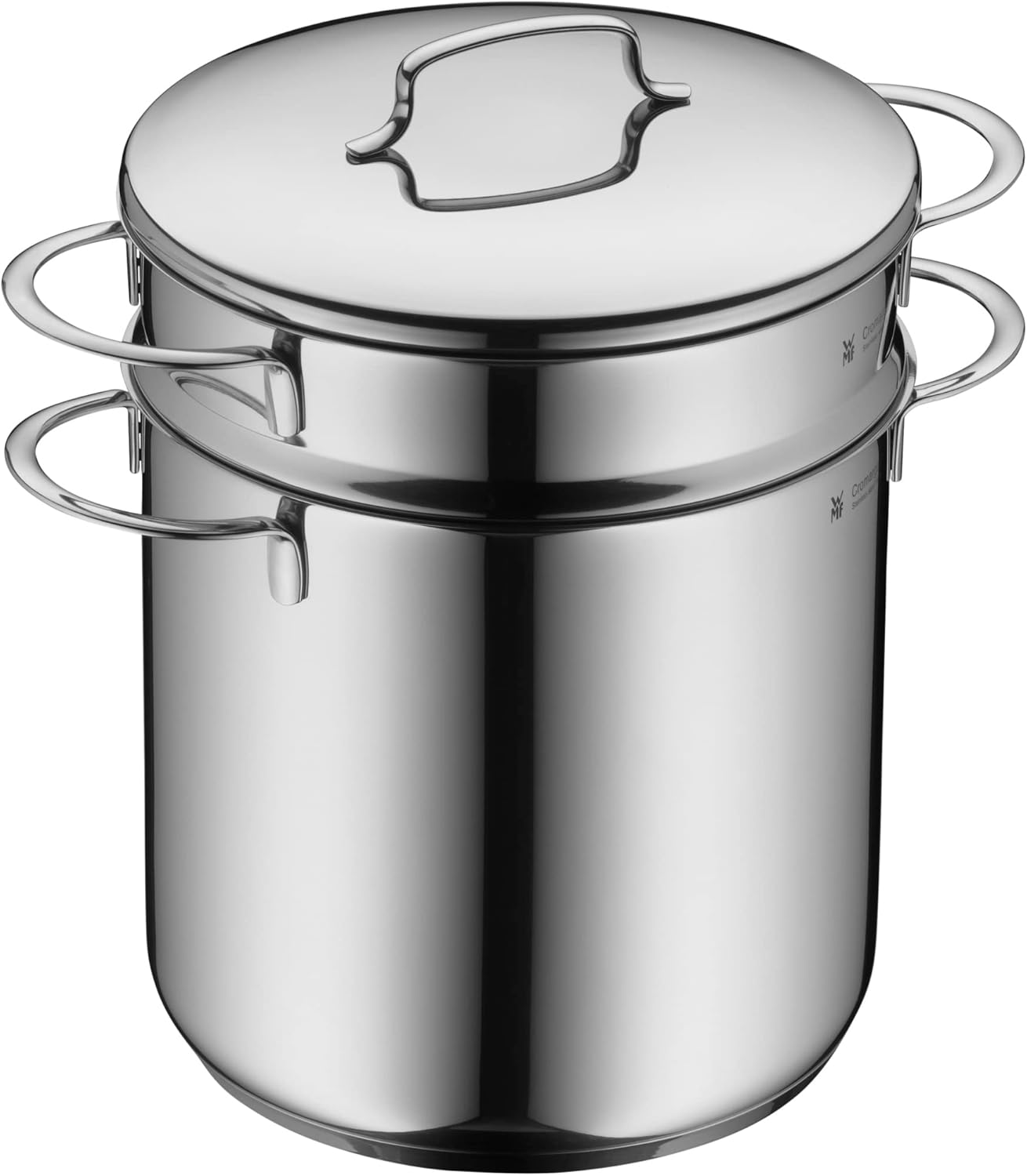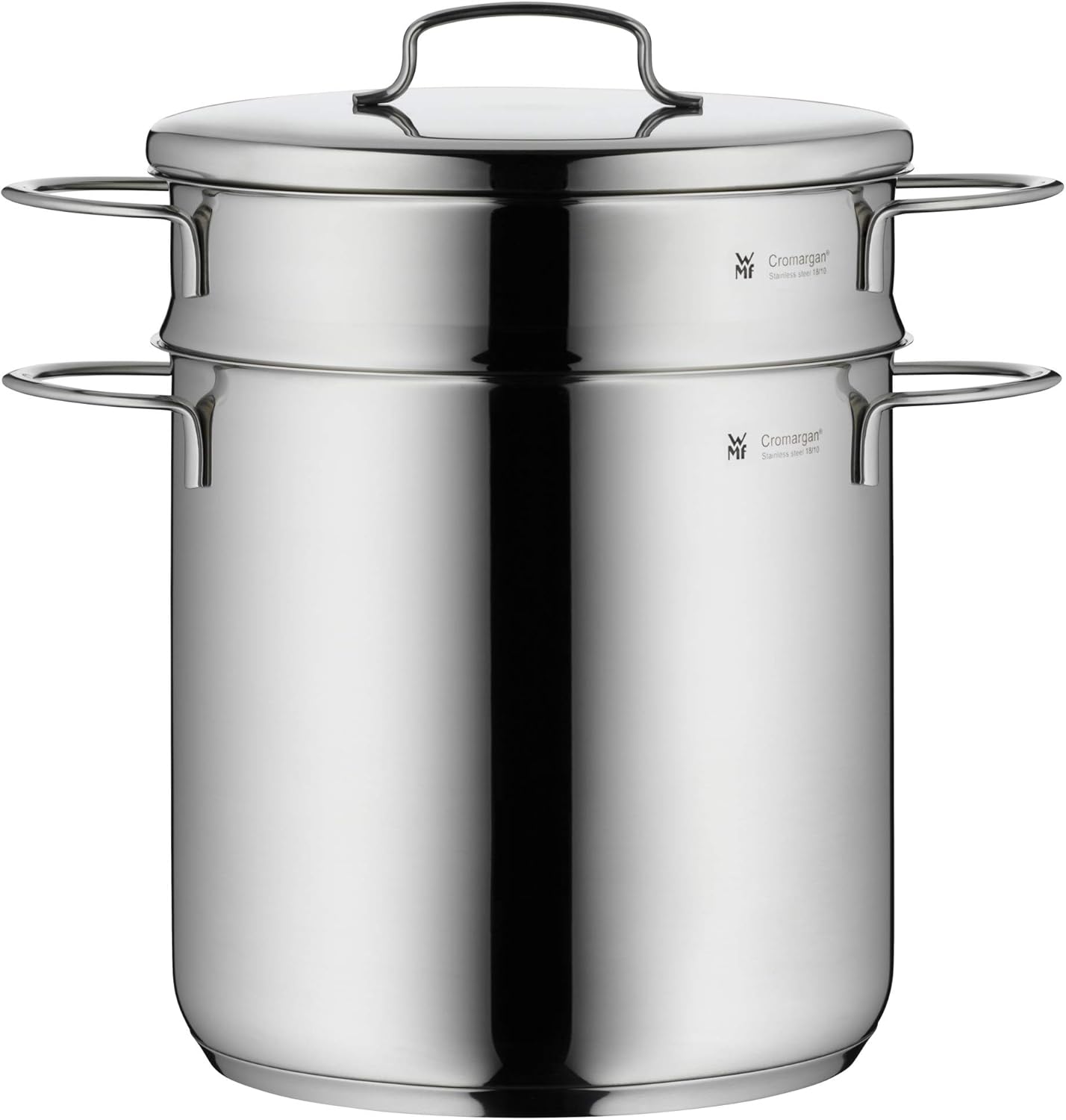 قابلمه کوچک پاستا WMF با درب و محفظه فلزی، کوچک ۱۸ سانتیمتر، ۳ لیتر، استیل ضد زنگ براق Cromargan، سازگار با القایی، قابل چیدن روی هم، ایدهآل برای وعدههای غذایی کوچک یا خانوادههای تک نفره