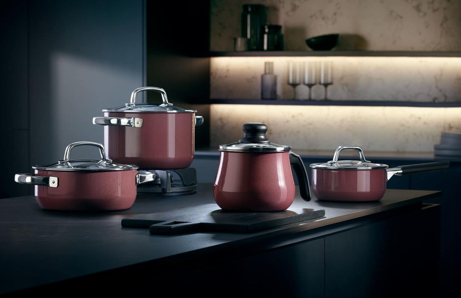 قابلمه کوچک معدنی WMF Fusiontec با درب رز کوارتز قرمز