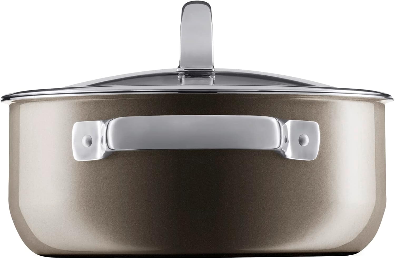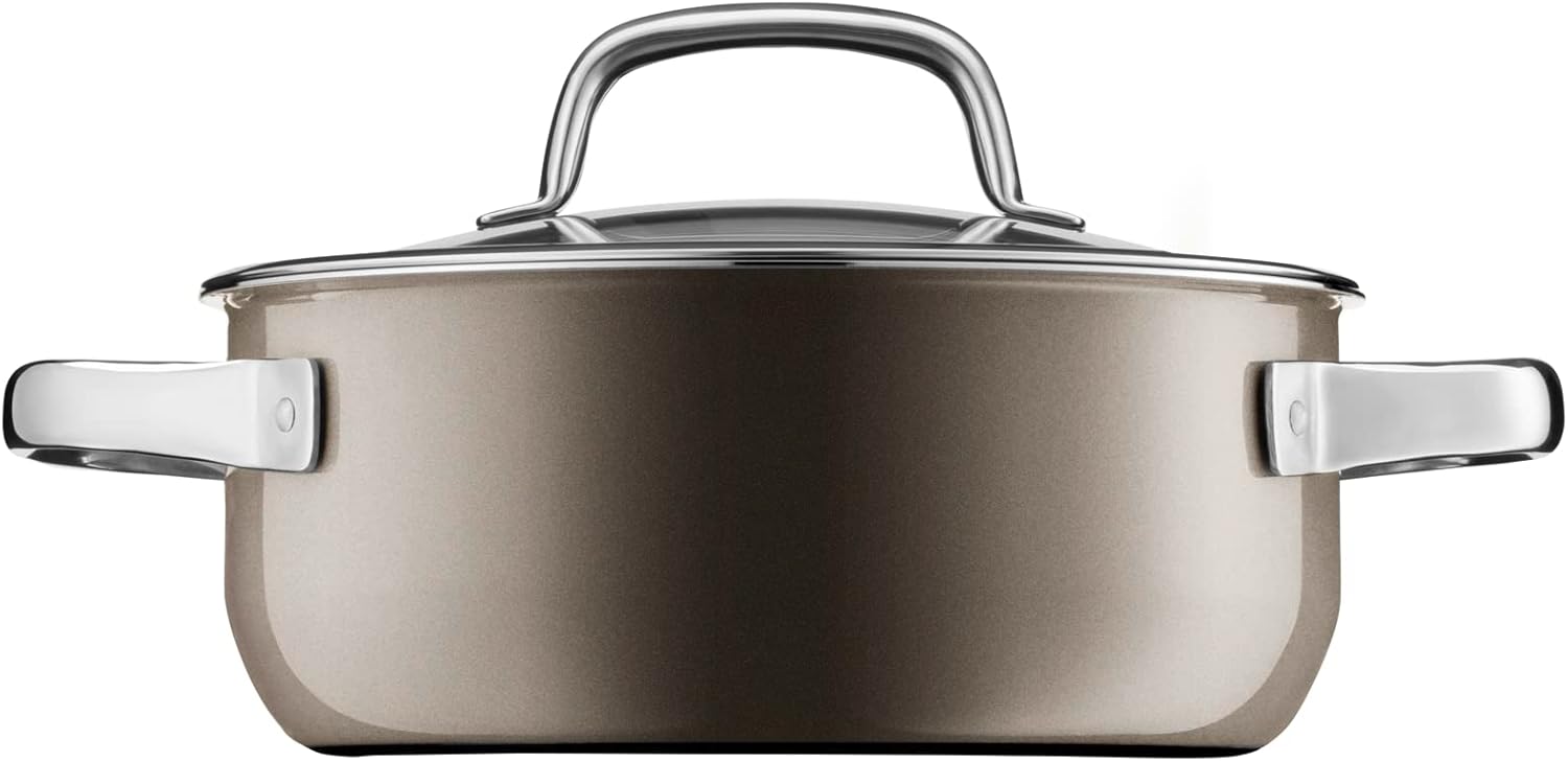قابلمه کوچک معدنی WMF Fusiontec، 20 سانتیمتر، درب شیشهای، سازگار با اجاق القایی، 2.4 لیتر، سرامیک پیشرفته، ضد خش، قهوهای، 20 سانتیمتر قهوهای
