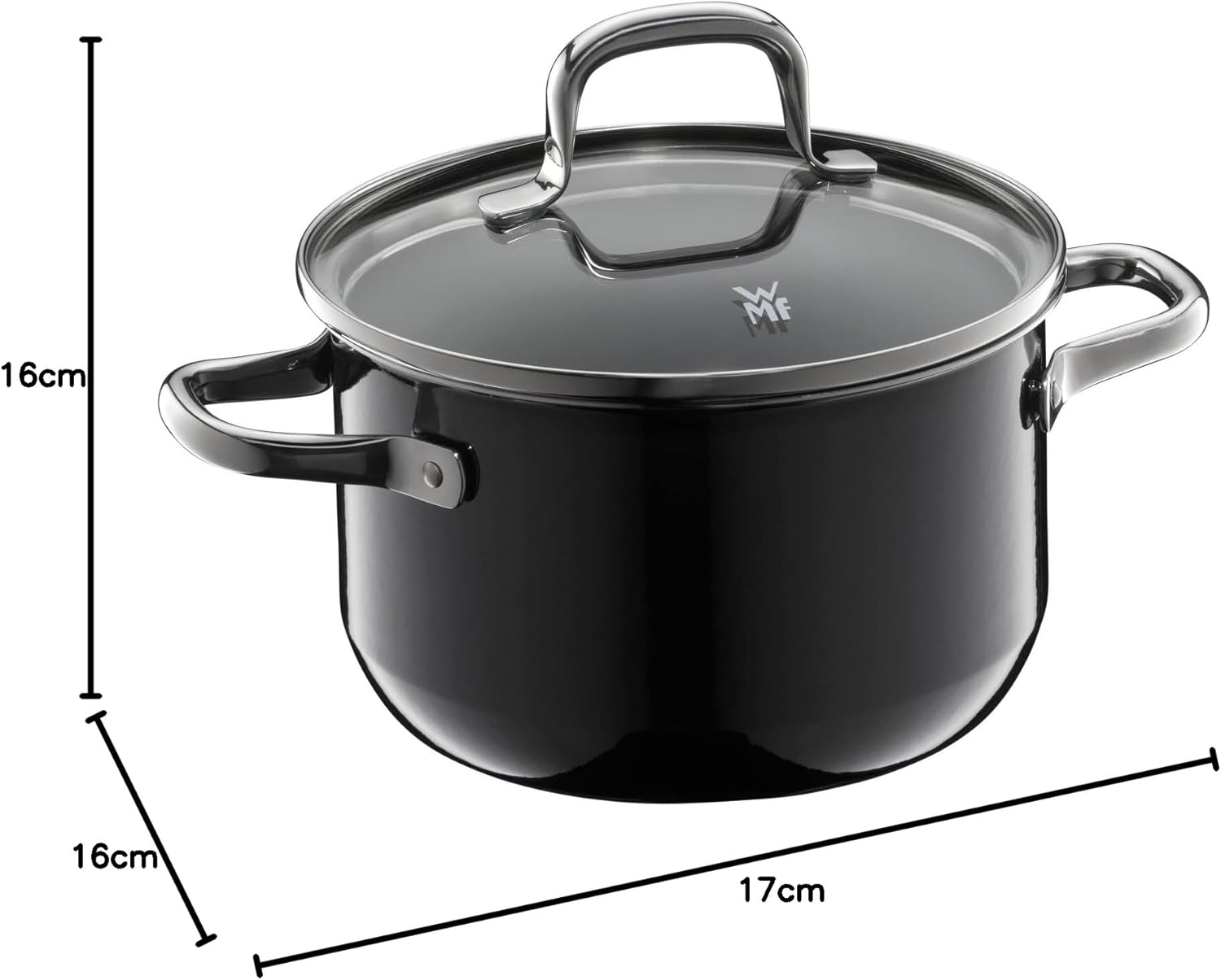 WMF Fusiontec Essential Kochtopf klein 16 cm Glasdeckel, Fleischtopf Induktion, 2,0l, kleiner Topf Kochtopf klein, High-Tech Keramik, kratzfest, unbeschichtet, schwarz, Made in Germany | قیمت یورویی 74.99€
