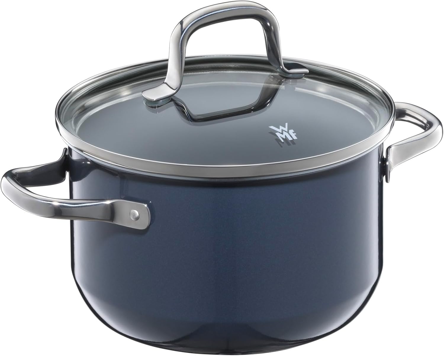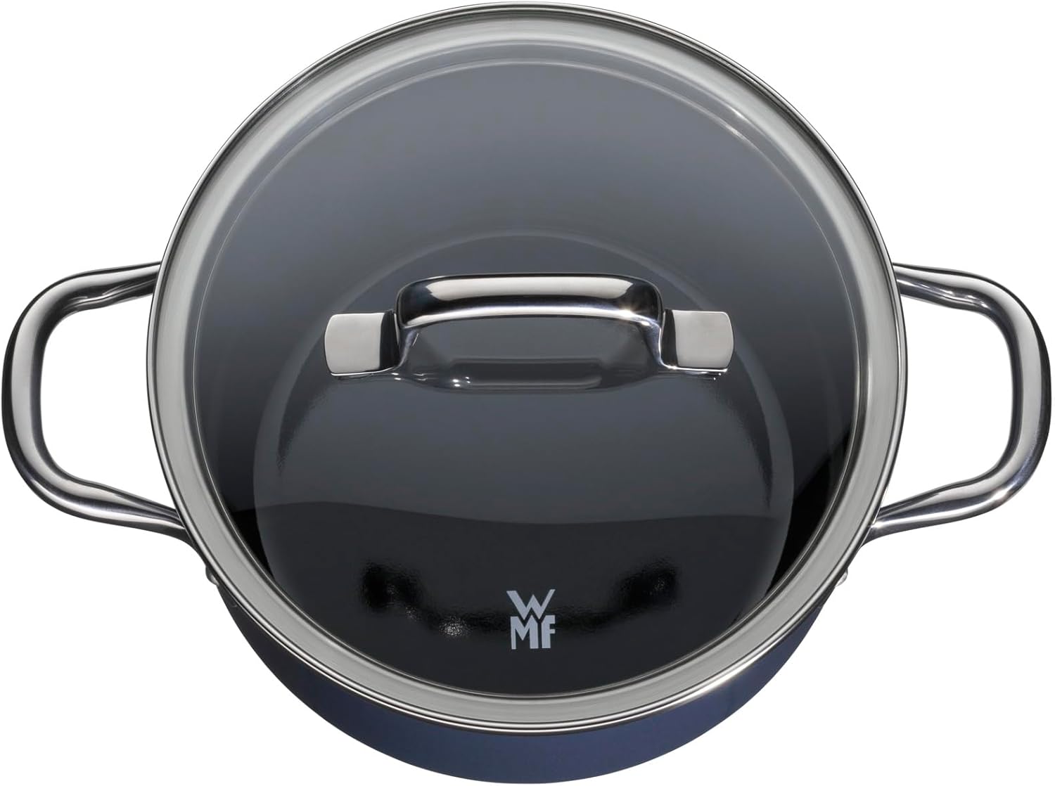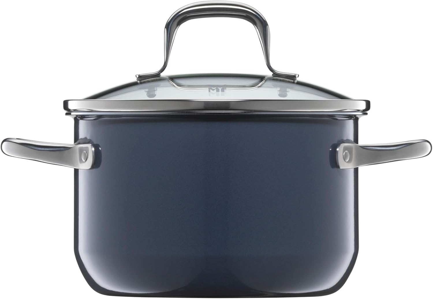 قابلمه کوچک WMF Fusiontec Essential، درب شیشهای ۱۶ سانتیمتری، سازگار با اجاق القایی، ۲.۰ لیتر، قابلمه کوچک، سرامیک پیشرفته، ضد خش، بدون پوشش، آبی تیره، ساخت آلمان