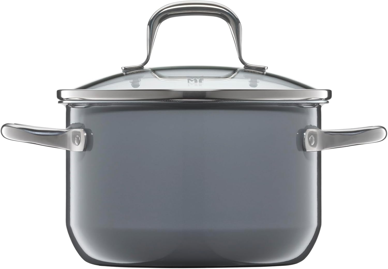 قابلمه کوچک WMF Fusiontec Essential، درب شیشهای ۱۶ سانتیمتری، سازگار با اجاق القایی، ۲.۰ لیتر، قابلمه کوچک، سرامیک پیشرفته، ضد خش، بدون پوشش، خاکستری، ساخت آلمان