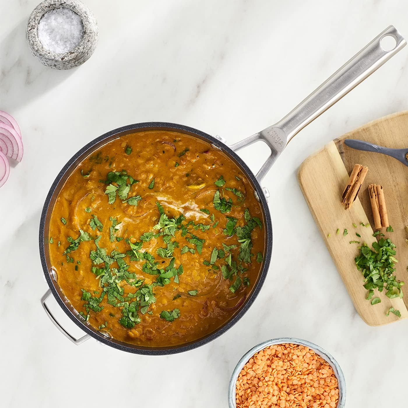 KEIN KLEBEN ODER ABBLÄTTERN: Die extrem langlebige Ninja Foodi ZEROSTICK kombiniert eine Plasma-Keramik-Verbindung mit der exklusiven Beschichtung von Ninja und schafft so eine robuste strukturierte Oberfläche, die frei von Abplatzungen bleibt ROBUST & LANGLEBIG: Die äußerst strapazierfähige strukturierte Oberfläche ist kratzfest, für Metallutensilien geeignet und spülmaschinenfest. Geeignet für alle Herdarten, einschließlich Induktion VERHINDERT DAS ANHAFTEN VON LEBENSMITTELN, TAG FÜR TAG: Kochen Sie mit wenig bis gar keinem Öl. Braten Sie wie in Edelstahl, ohne Anhaften GEEIGNET FÜR ALLE HERDARTEN; Kompatibel mit Induktions-, Gas-, Elektro- & Keramikherden; Ofensicher bis 260°C. Kann zusammen mit anderen Pfannen aus der stapelbaren Serie verstaut werden, um Ihr Kochgeschirr sicher aufzubewahren und zu schützen BEINHALTET: Ninja Foodi 20cm Kochtopf mit Deckel, spülmaschinenfest. Gewicht: 1,52 kg. Farbe: Grau 10-JAHRE ERSATZGARANTIE einschließlich der ZEROSTICK-Beschichtung, nach Registrierung bei Ninja (bei ordnungsgemäßer Verwendung gemäß der Gebrauchs- und Pflegeanleitung) | قیمت یورویی : 39.64€