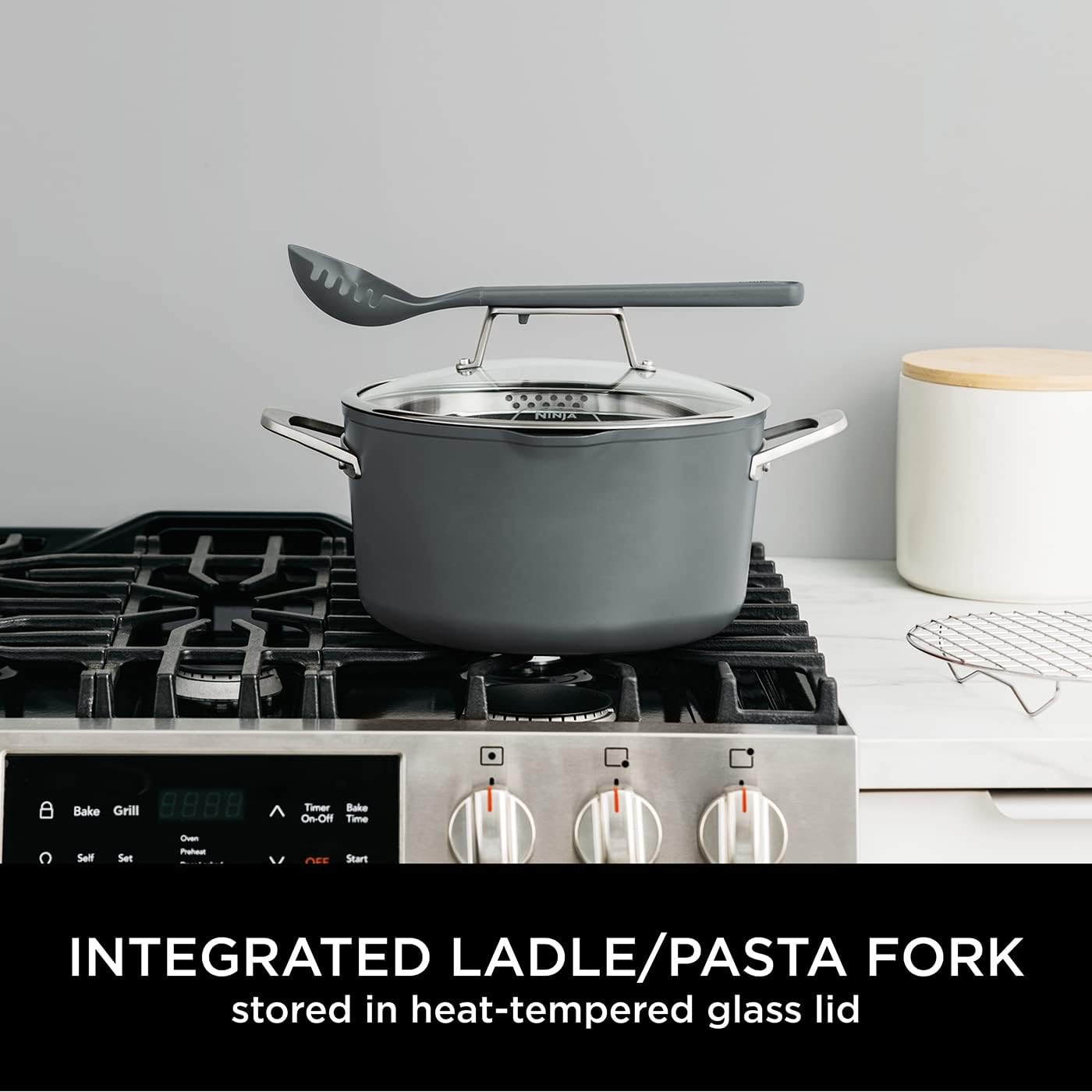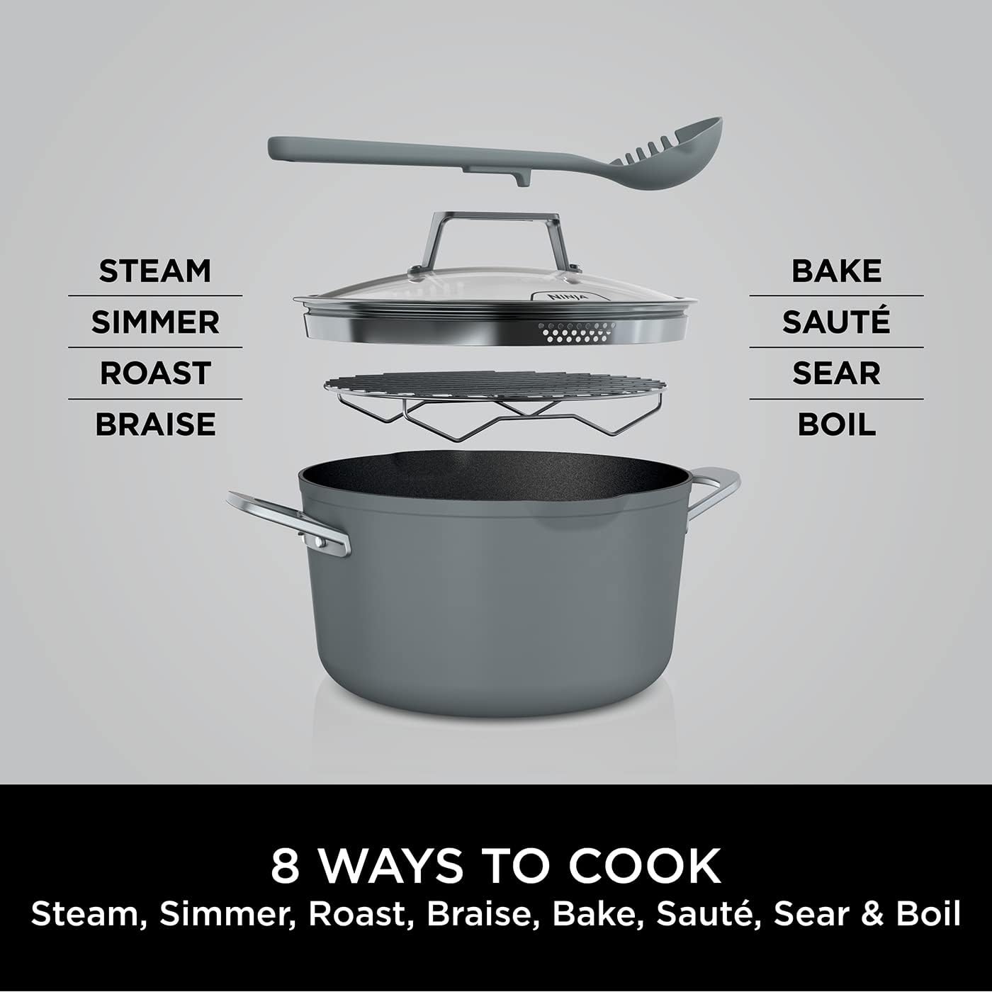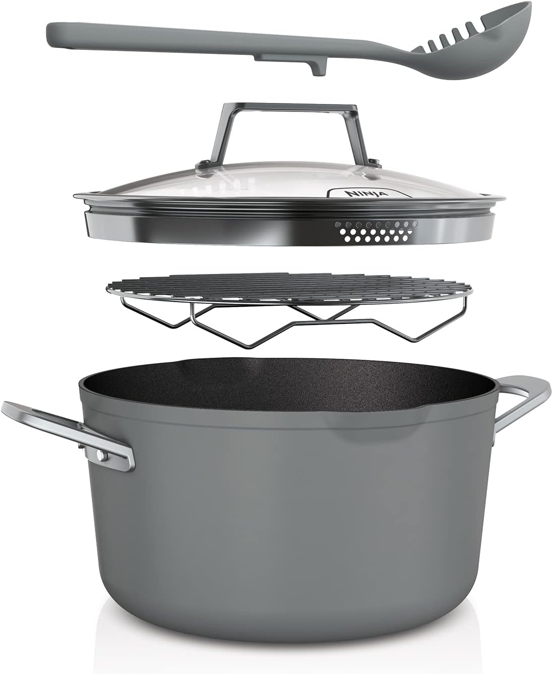 Ninja Foodi 8-in-1 PossiblePot mit ZEROSTICK, Brat-/Dampfgitter, Sieb, Utensil, Glasdeckel, 6,6 l, induktionsgeeignet, ofenfest bis 260 °C, Meersalzgrau CW202GYUK Möglicher Topf | قیمت یورویی 114.64€