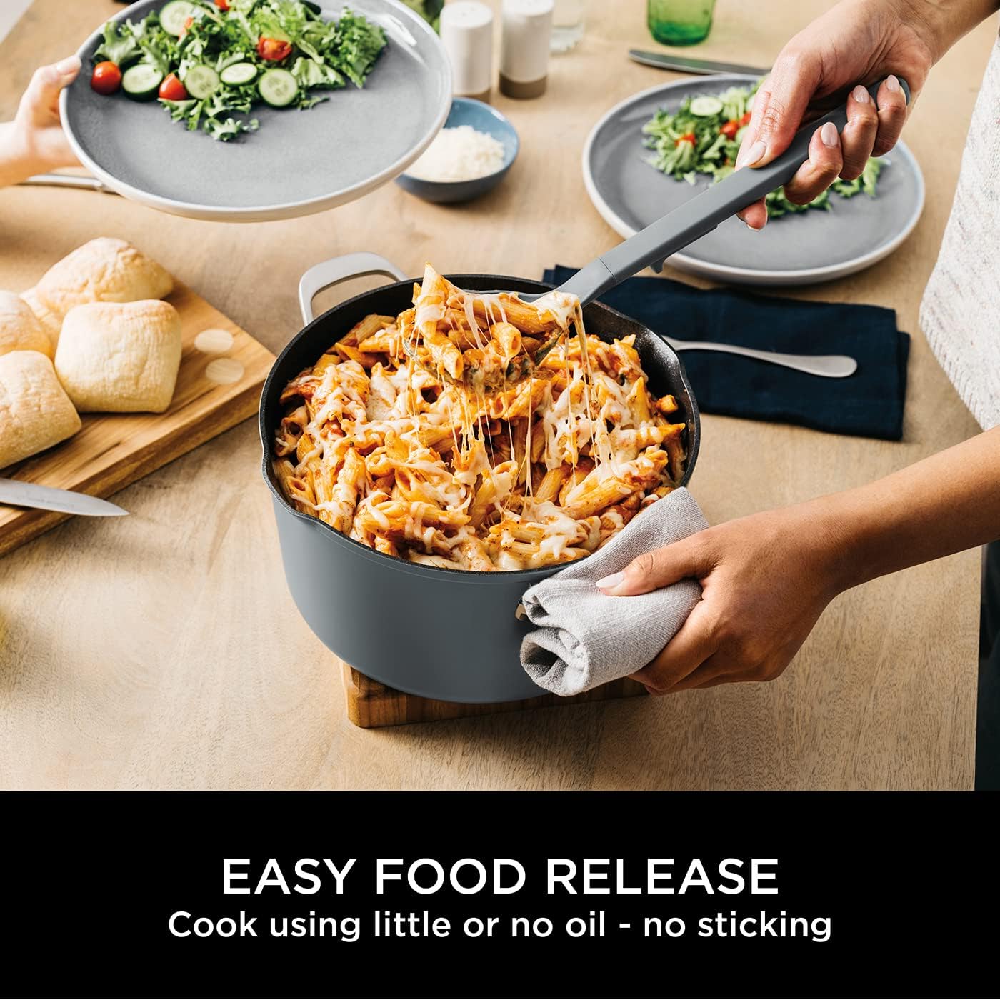 قابلمه 8 کاره پویزن نینجا فودی با درب شیشهای، سینی سرخکن/بخارپز، صافی، کارد و چنگال، درب شیشهای، 6.6 لیتر، سازگار با القای القایی، قابل استفاده در فر تا دمای 260 درجه سانتیگراد، رنگ خاکستری نمک دریا، مدل CW202GYUK