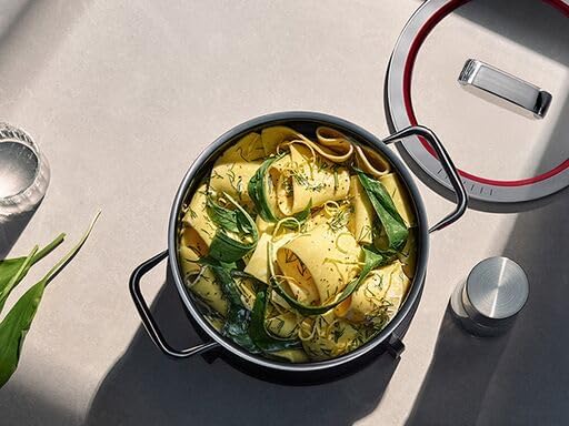 قابلمه WMF Fusiontec Function Pro، با درب، 20 سانتیمتر، جنس مقاوم در برابر خش، سازگار با اجاق القایی، مناسب برای انواع اجاق گاز، ساخت آلمان، مشکی، 0519365290