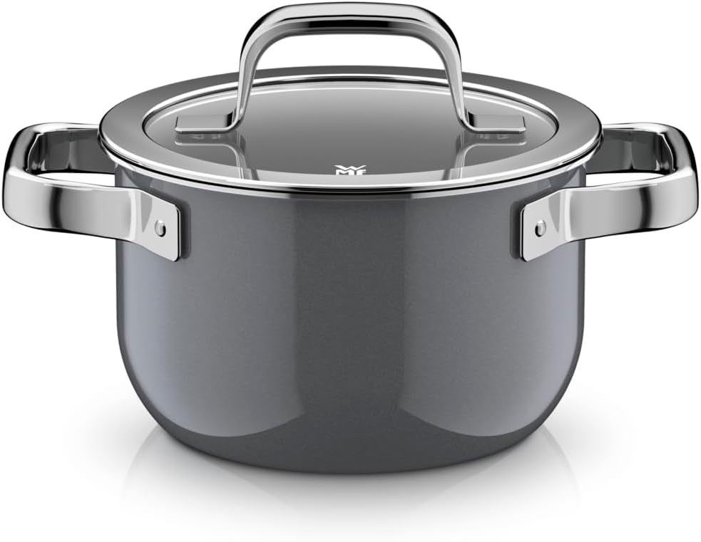 قابلمه WMF Fusiontec Mineral Pro، قابلمه با درب، 16 سانتیمتر، جنس مقاوم در برابر خش، قابلمه کوچک مناسب برای اجاق القایی و انواع اجاق گاز، ساخت آلمان، پلاتینیوم، 0518775290