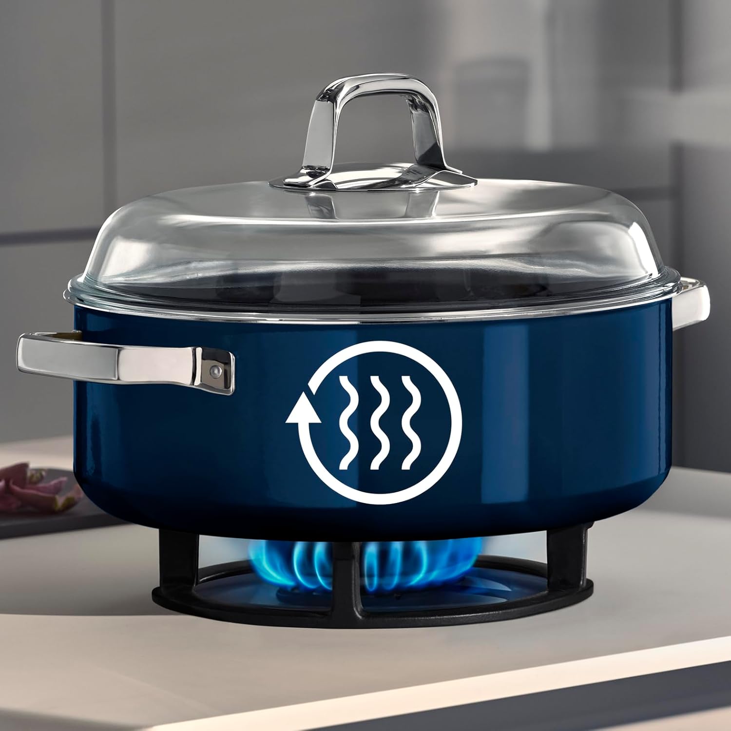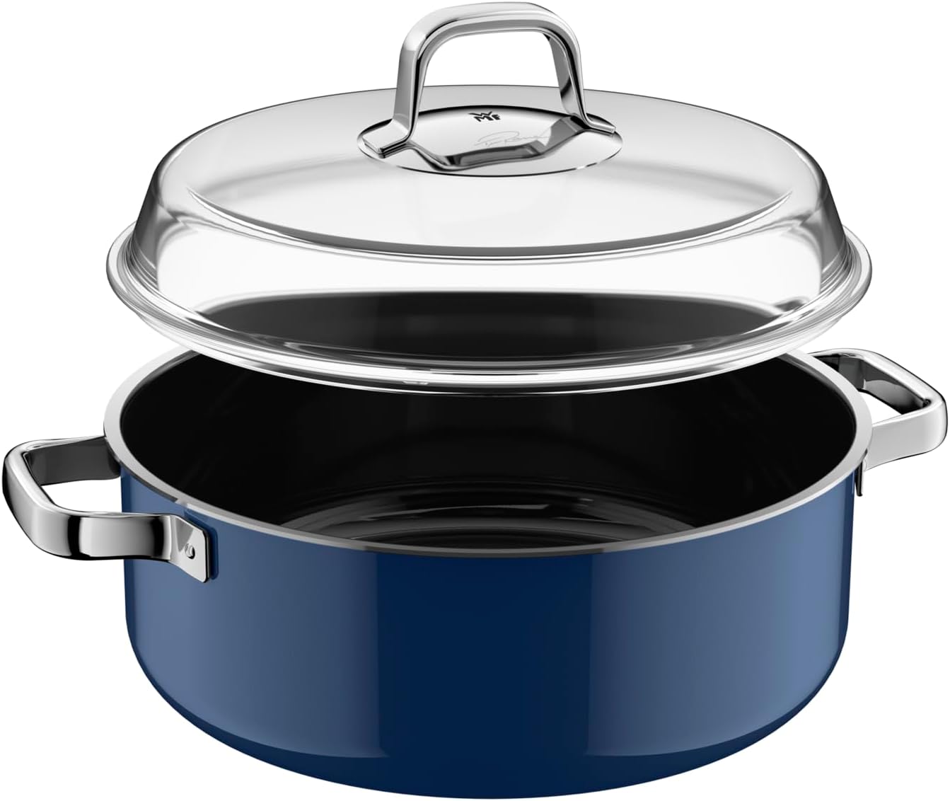 قابلمه WMF Fusiontec Mineral Pro، نسخه Tim Raue، قابلمه با درب، 28 سانتیمتر، جنس بادوام و ضد خش، ماهیتابه با درب، مناسب برای انواع اجاق گاز، ساخت آلمان، آبی اقیانوسی، 0521425290