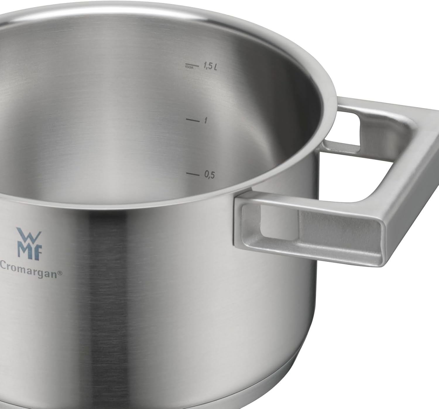 WMF Ultimate Cool Kochtopf klein 16 cm, Edelstahldeckel, Fleischtopf Induktion 1,9l, Cromargan Edelstahl matt, wärmereduzierende Griffe, Induktions Topf mit Innenskalierung, spülmaschinengeeignet | قیمت یورویی 69.85€