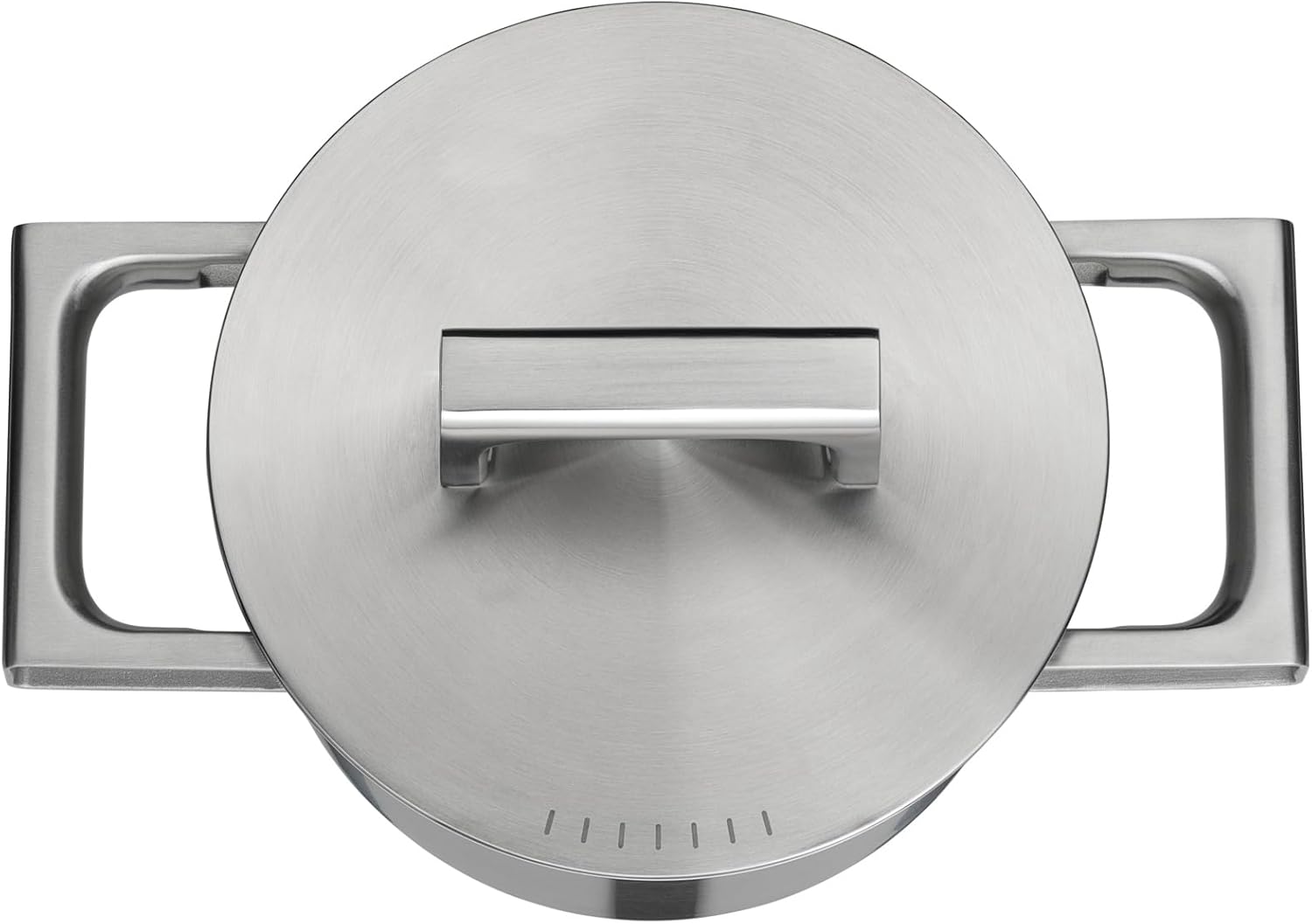 قابلمه WMF Ultimate Cool کوچک 16 سانتیمتری، درب استیل ضد زنگ، قابلمه القایی بلند 1.9 لیتری، روکش مات استیل ضد زنگ Cromargan، دستههای کاهنده حرارت، قابلمه القایی با ترازوی داخلی، قابل شستشو در ماشین ظرفشویی