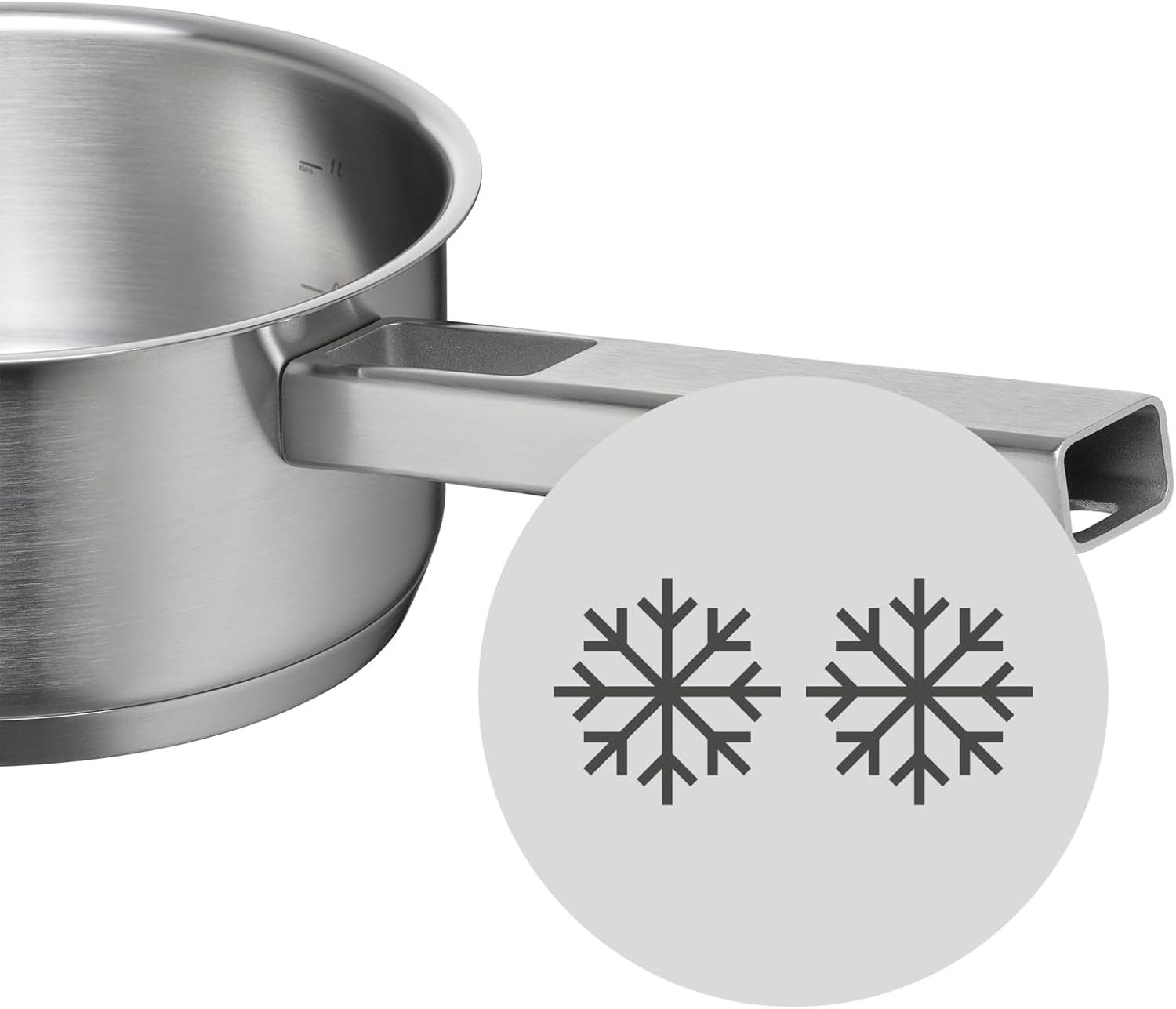 Inhalt: 1x Stielkasserolle ohne Deckel 16 cm (Volumen 1,4l, Höhe 10 cm) - optimal für Herdplatten mit Ø 14,5 cm - Artikelnummer: 1798166031 Material: Gefertigt aus strapazierfähigem, langlebigem Cromargan Edelstahl 18/10, mattiert, unbeschichtet - rostfrei, spülmaschinengeeignet, hitzebeständig und backofengeeignet bis 250°C Die Töpfe mit Skalierung können auf allen gängigen Herdarten verwendet werden: Induktionsherde, Gasherde, Elektroherde, Glaskeramik-herde. Dank der optimalen Wärmeverteilung brennt nichts an Ultimate Cool vereint anspruchsvolles Design mit hochwertigem, satiniertem Edelstahl sowie höchster Funktionalität wärmereduzierender Griffe Dank des speziellen Griffdesigns, wird die Wärmeübertragung vom Topf auf die Griffe deutlich reduziert. Die Bodenkonstruktion (TransTherm) sorgt für eine gleichmäßige und lange Wärmespeicherung. Die praktische Innenskalierung ermöglicht präzises Abmessen von Flüssigkeiten, breiter Schüttrand für mühelos-tropffreies Ausgießen von Flüssigkeiten | قیمت یورویی : 67.99€