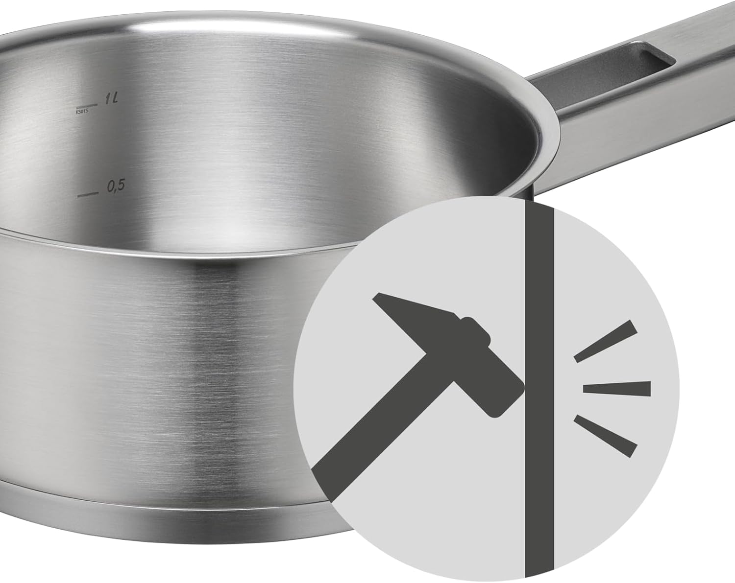 قابلمه WMF Ultimate Cool 16 سانتیمتر بدون درب، قابلمه کوچک 1.4 لیتری، قابلمه شیر القایی، مات از جنس استیل ضد زنگ Cromargan، بدون پوشش، قابلمه القایی با ترازوی داخلی، قابل شستشو در ماشین ظرفشویی