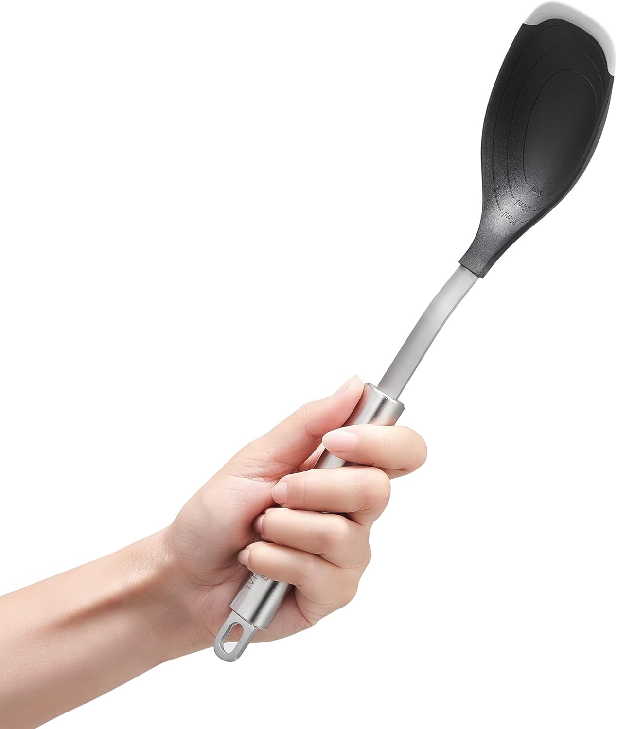 قاشق سرو سیلبرتال با دسته استیل ضد زنگ و لبه سیلیکونی - قاشق سرو مخصوص قابلمههای روکشدار - مقاوم در برابر حرارت و قابل شستشو در ماشین ظرفشویی