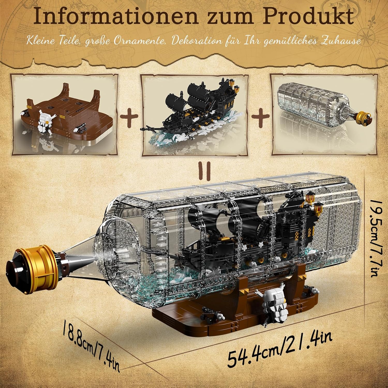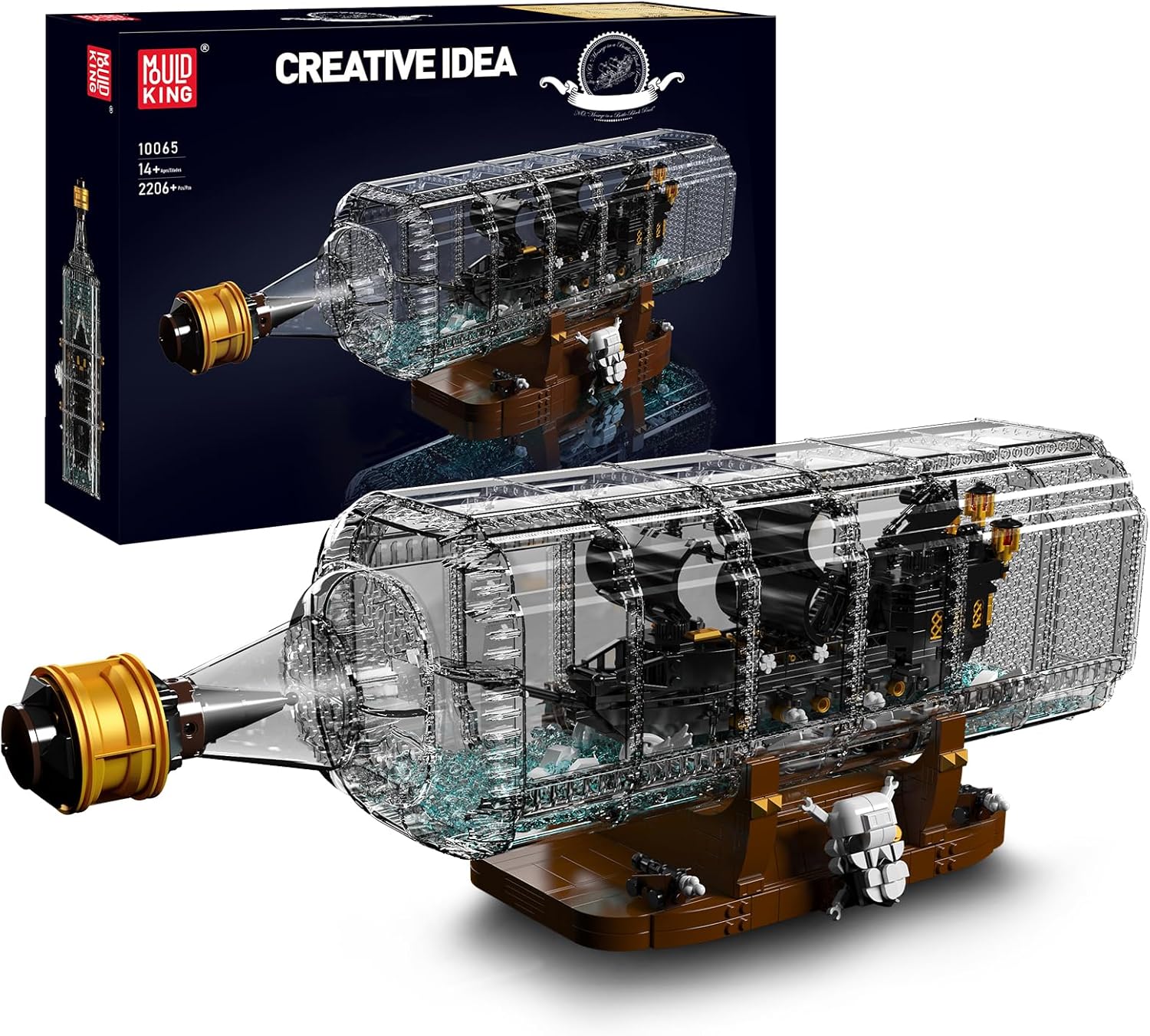 Mould King 10065 Schiff in Flasche Spielzeug 2206 Teile Piratenschiff Modell für Ideas Black Pearl Segelschiff Groß MOC Bausteine Baukästen Ship in a Bottle Technik Klemmbausteine Bausatz | قیمت یورویی 67.15€
