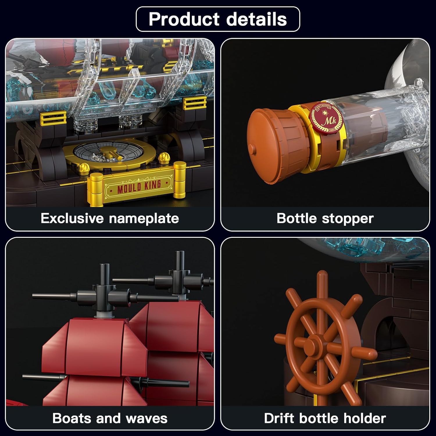 【Piratenschiff Bausteine】: Dies ist ein Queen Anness Revenge schiff Bausteine, dieser Piratenschiff im Flaschen Bausatz basiert auf dem Geisterschiff-Prototyp, Ein Schiff mit realistischen Masten in einer Flasche, dekoriertes Ruder, die Korken, Wachssiegel und wasserähnliche Elemente enthalten. Dieser piratenschiff bausatz lädt Sie zu einer endlosen Entdeckungsreise ein 【Entdecke die Magie des Piratenschiffs】: Größe: 31 × 10.9 × 15.5 cm, Enthält 885 blockteile, Die klare Blockflasche von piratenschiff schafft eine atemberaubende Ausstellung. In der Flasche sind die Details des Bootes deutlich zu erkennen, Es inspiriert Piraten-Enthusiasten zu einer unbegrenzten Vorstellungskraft von der mysteriösen Segelreise 【Spaß am Bauen Genießen】: Entdecke den Spaß an Ship in a Bottle beim Zusammenbauen! Entwickle eine hervorragende Hand-Augen-Koordination, logisches Denken der Kinder durch den sorgfältigen Zusammenbau der Teile. Durch die Simulation der Bedienung eines piratenschiff klemmbausteine Sets können Kinder das Segelerlebnis erleben 【Sicherheitsmaterial】: Hergestellt aus umweltfreundlichen und sicheren abs-materialien und natürlichen tonerrohstoffen, sicher und harmlos. die gebauten schiff in flasche klemmbausteine modellbausatz haben eine solide struktur und sind realitätsnah. die bausteinteile sind mit bausteinspielzeug anderer marken kompatibel und können mit bauteilen anderer marken zusammengesetzt werden, um das gewünschte spielzeug zu erstellen 【Geschenkverpackung】: Dieses piratenschiff modell klemmbausteine mit bunter kartonverpackung ist ein schönes geschenk zum geburtstag/kindertag/weihnachten/neujahr. Wenn Sie fehlende teile finden oder andere probleme haben, wenden Sie sich bitte an uns, Wir werden alles tun, um sicherzustellen, dass Sie mit uns eine positive Erfahrung machen | قیمت یورویی : 39.99€