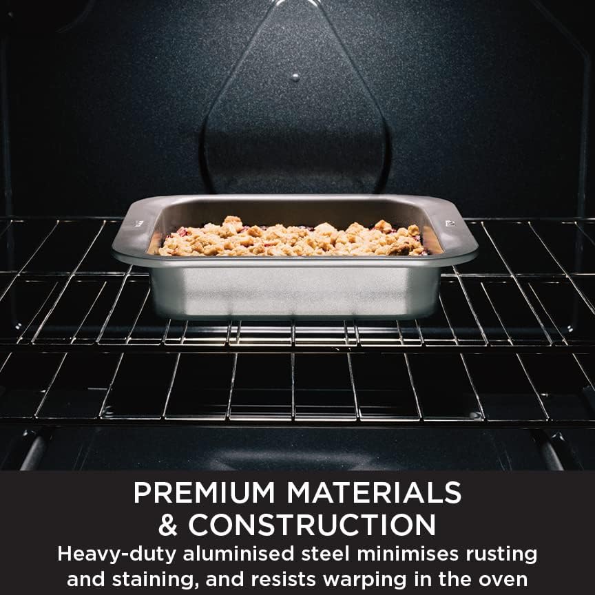 Ninja Foodi ZEROSTICK quadratische Kuchenform, 22 cm, antihaftbeschichtet, langlebig, robuste Kuchenform, aus aluminisiertem Stahl, grau, B30408EUUK | قیمت یورویی 23.09€