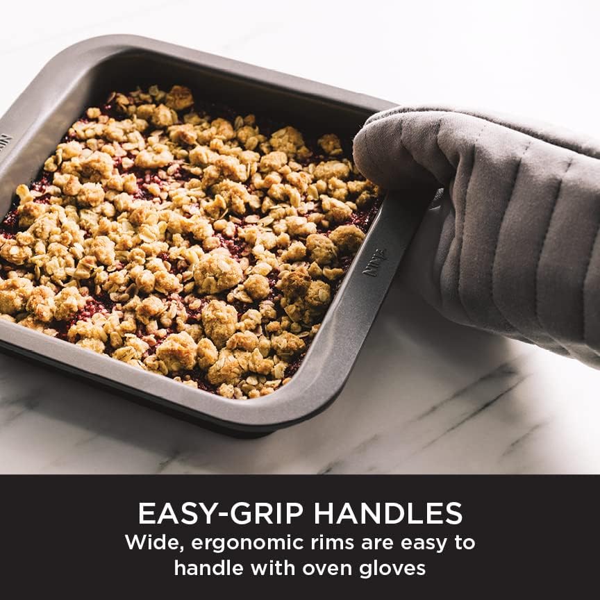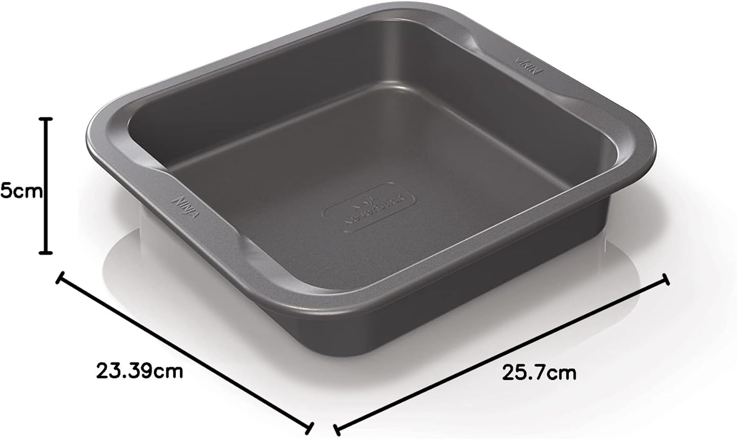 قالب کیک مربعی Ninja Foodi ZEROSTICK، 22 سانتیمتر، نچسب، بادوام، قالب کیک سنگین، ساخته شده از فولاد آلومینیومکاری شده، خاکستری، B30408EUUK