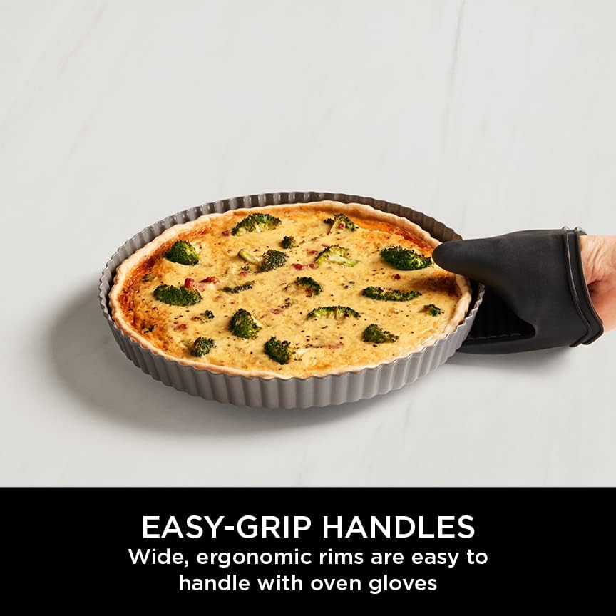 قالب کیک و پای نچسب Ninja Foodi ZEROSTICK B30910EUUK، بادوام، مقاوم، ساخته شده از فولاد آلومینیومکاری شده، خاکستری، قالب فلن/کیش/تارت ۲۵ سانتیمتری