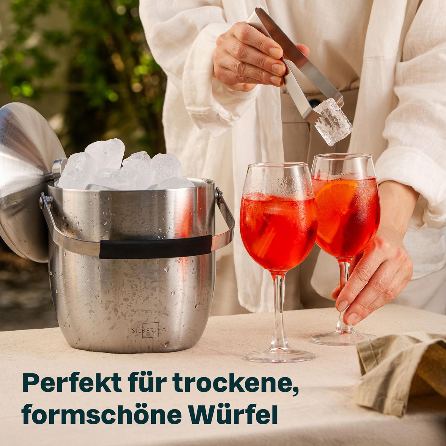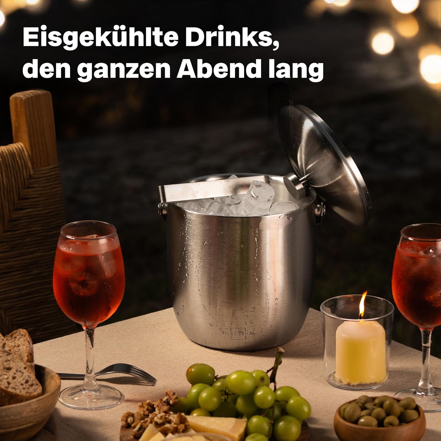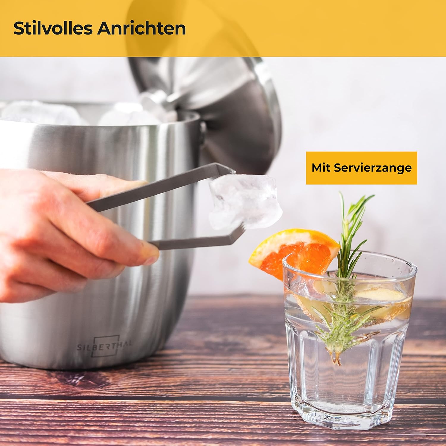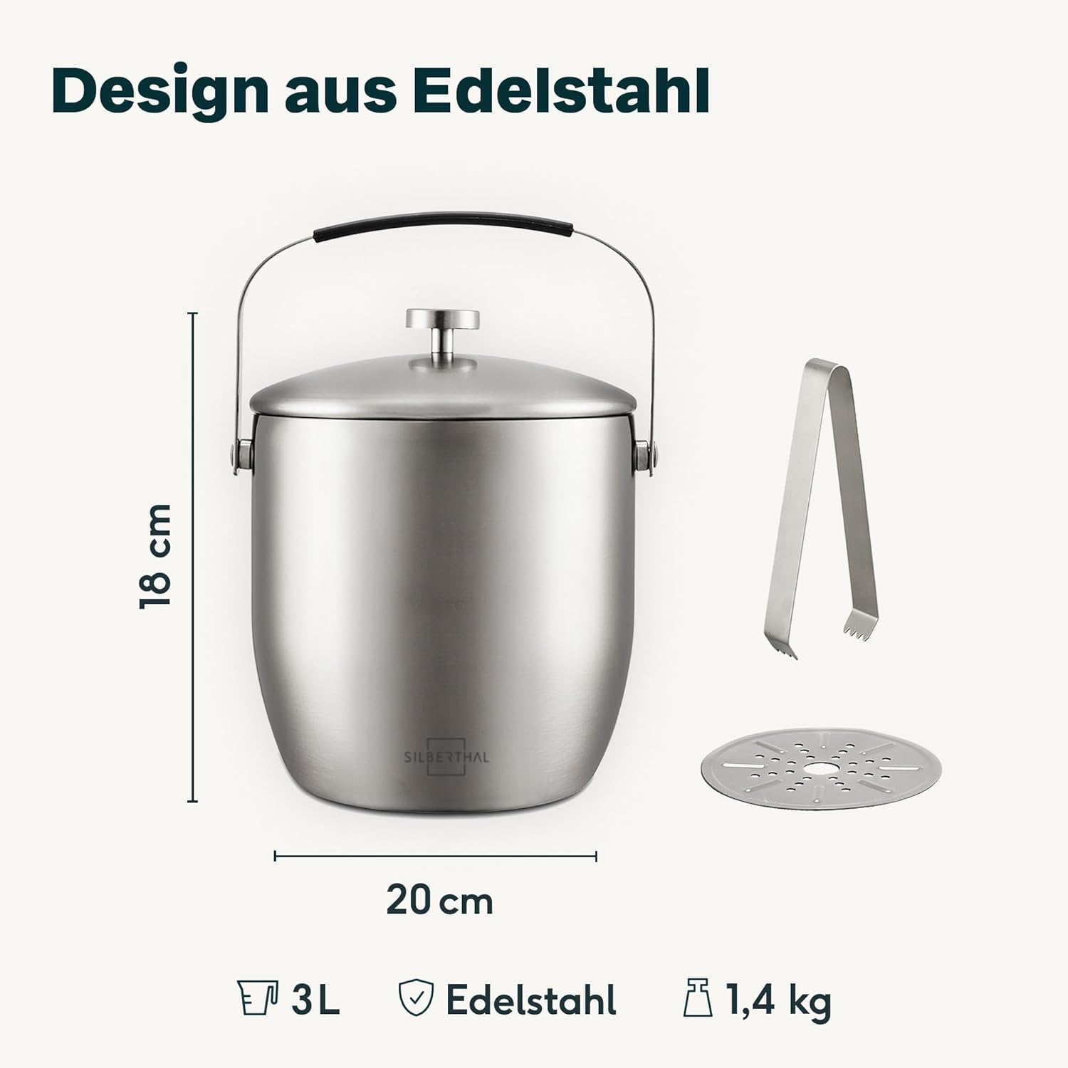 SILBERTHAL Eiswürfelbehälter Edelstahl 3l - Eisbehälter mit Deckel und Zange -Eiseimer Edelstahl - Doppelwandig Isolierter Flaschenkühler - Auch als Weinkühler, Sektkühler Eiseimer 3l | قیمت یورویی 39.95€