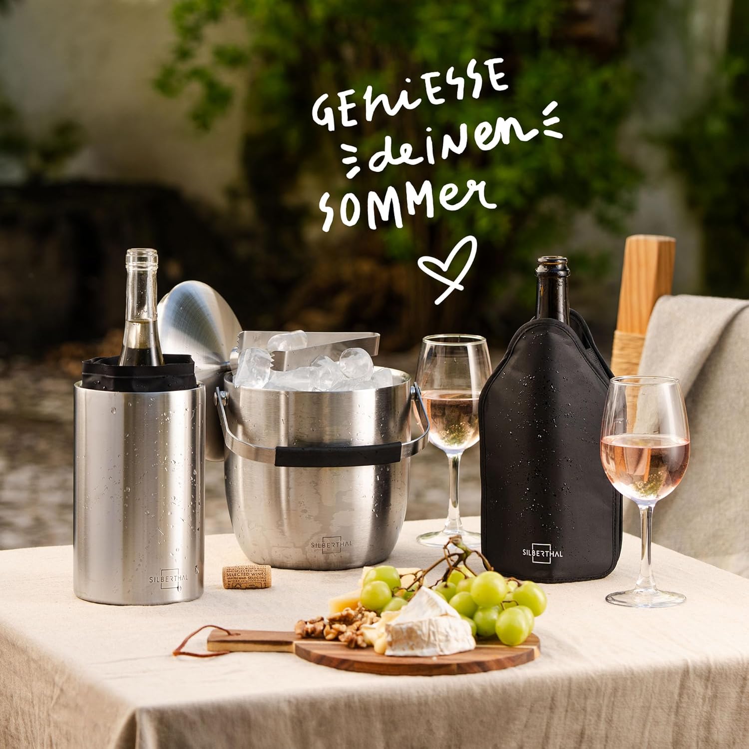 قالب یخ استیل ضد زنگ SILBERTHAL 3 لیتری - ظرف یخ با درب و انبر - سطل یخ استیل ضد زنگ - خنک کننده بطری عایق دو جداره - همچنین به عنوان خنک کننده شراب، خنک کننده شامپاین، سطل یخ 3 لیتری مناسب است