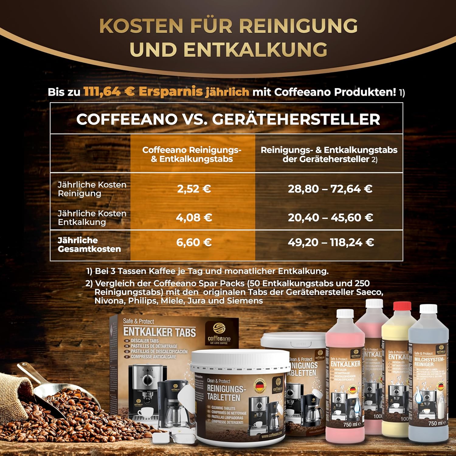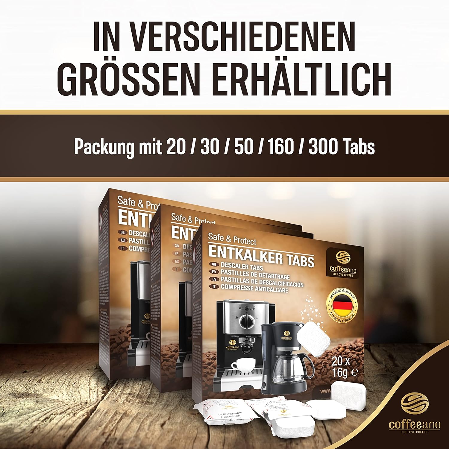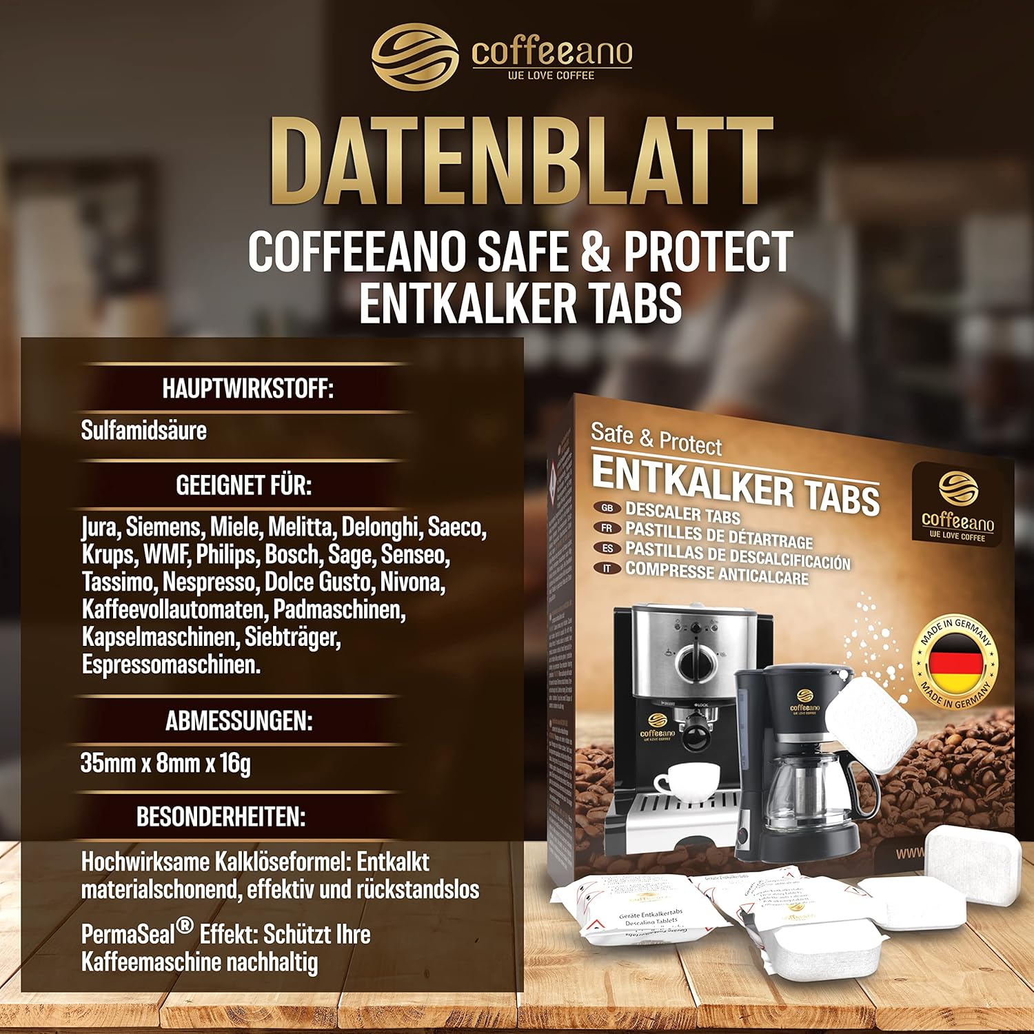 Coffeeano 50 Entkalkungstabletten für Kaffeevollautomaten und Kaffeemaschinen. Entkalkungs-Tabs für Delonghi, Siemens, EQ-Serie, Jura, Krups, Bosch, Miele, Melitta, WMF uvm. Tabs 50 stück (1er Pack) | قیمت یورویی 16.97€