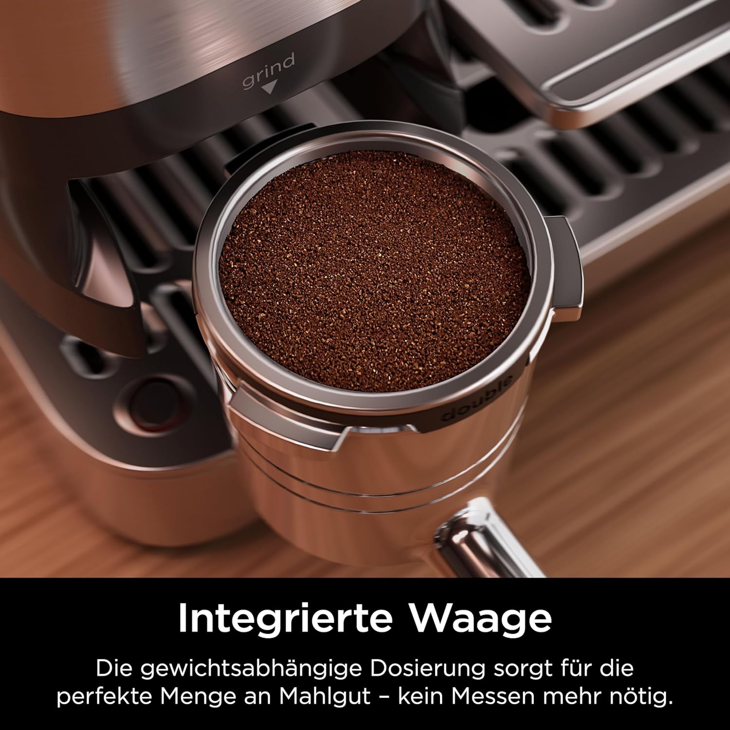 3 MASCHINEN IN 1: Genießen Sie Café-Favoriten mit dieser Espresso-, Cold-Brew- und Filterkaffeemaschine nun auch zu Hause. Sie enthält außerdem ein integriertes Scheiben-Mahlwerk, einen Stopfer, Milchaufschäumer & Siebträger MIKROSCHAUM AUF KNOPFDRUCK: Der Aufschäumer dampft und quirlt gleichzeitig und verwandelt Kuh- bzw. Pflanzenmilch in Mikroschaum mit 5 Voreinstellungen: gedämpfte Milch; dünner, dicker, besonders dicker Milchschaum, und kalter Milchschaum BARISTA-ASSIST-TECHNOLOGIE: Mit Mahlwerk und Aufschäumer, automatischen Voreinstellungen, Druck sowie einer integrierten Waage und Empfehlungen können Sie perfekt ausgewogenen Kaffee zubereiten EINFACH BEDIENBARE KAFFEEMASCHINE: Feilen Sie an Ihrem Barista-Können mit 25 Mahlgradeinstellungen, integrierter Waage und Milchaufschäumer; lassen Sie sich von der Maschine mit intuitiven Bedienfeld, Empfehlungen und autom. Voreinstellungen leiten INHALT: Schaumkanne mit integriertem Schneebesen, integriertes Mahlwerk, Reinigungsbürste, Starter-Set (Siebträger, Einzelkorb, Doppelkorb, Luxe-Korb, Trichter und integrierter Stopfer), Reinigungsset, Wasserhärtetest-Set und Rezeptanleitung ABMESSUNGEN: H: 37,7 x B: 33,7 x L: 35,5 cm. Gewicht: 17,25 kg. Farbe: Silber | قیمت یورویی : 681.62€