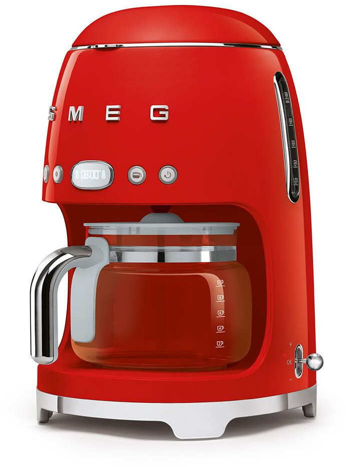 قهوه ساز فیلتری اسمگ مدل DCF02RDEU ، با طراحی کلاسیک دهه 50 میلادی، انتخابی زیبا و کاربردی برای خانه یا دفتر است.