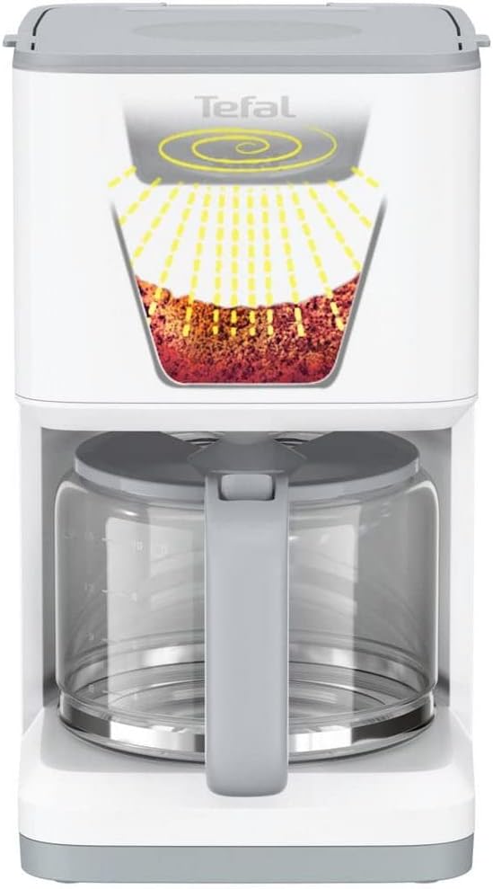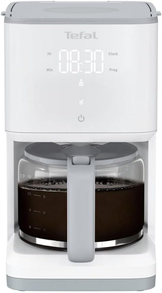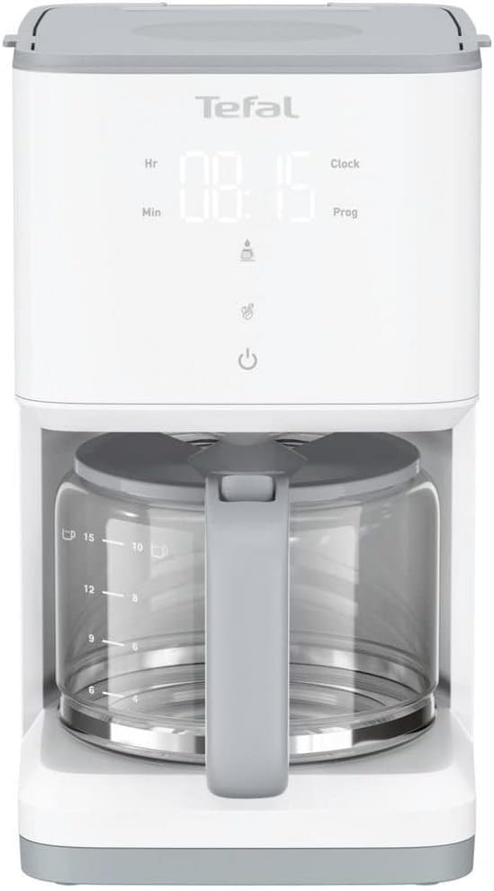 Tefal CM6931 Sense Filterkaffeemaschine | Digital-Anzeige | Glaskanne mit Deckel | Kapazität für 10 bis 15 Tassen | Aroma-Funktion | Warmhaltefunktion | Tropf-Stopp | Weiß | قیمت یورویی 49.99€