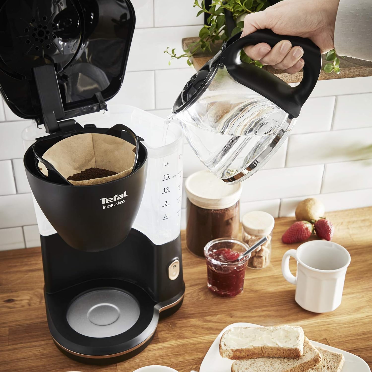 Filterkaffeemaschine inklusive Tefal, eine Kaffeemaschine extrem einfach zu bedienen, geeignet für Rechts- und LinkshAnder, 1,25 l, 10 bis 15 Tassen Ein Deckel mit automatischer Öffnung: einfaches Öffnen des Deckels auf Knopfdruck Ein abnehmbarer Filterhalter mit 2 Griffen: Rechts- oder LinkshAnder, der Filterhalter ist sehr leicht zu entfernen und zu reinigen Tefal | قیمت یورویی : 48.36€