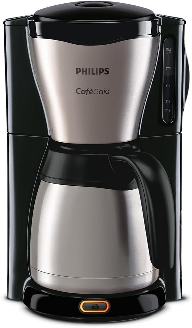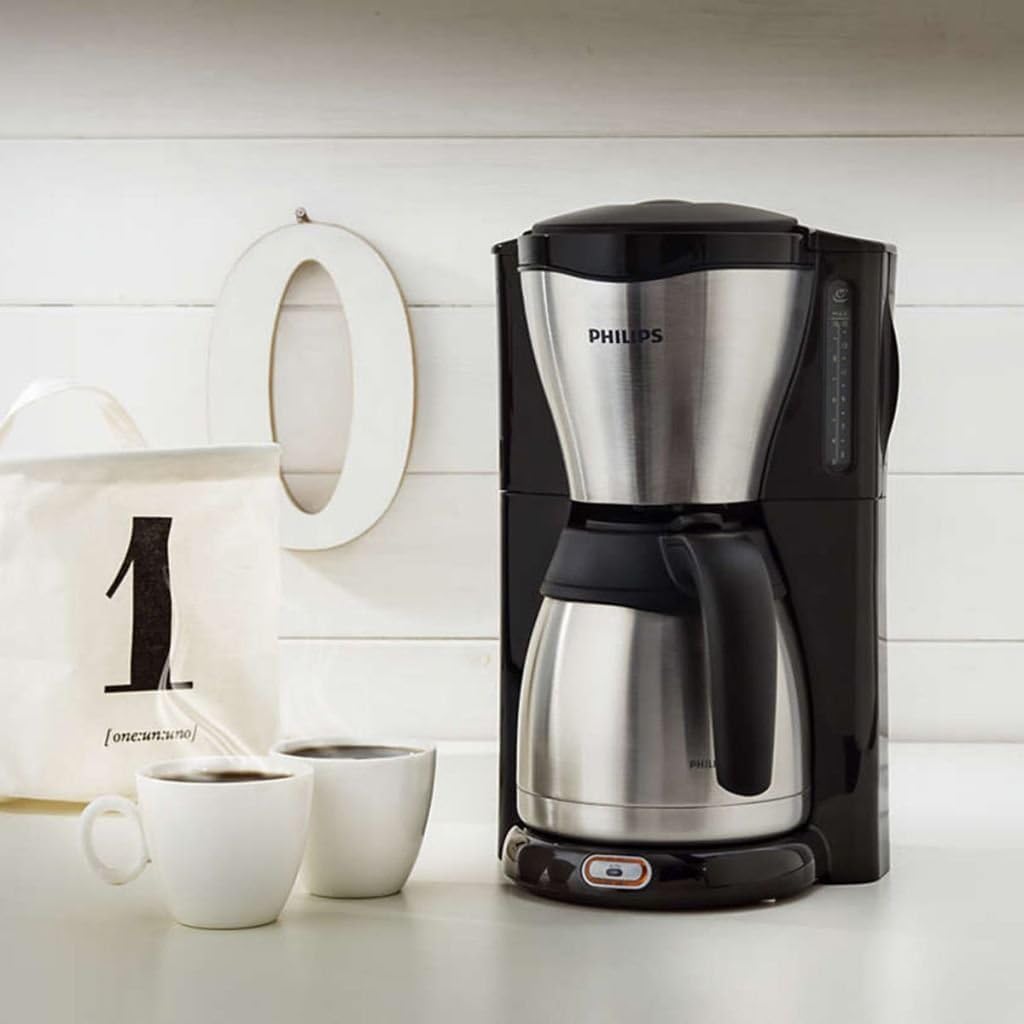 Elegante Thermoskanne für frischen Filterkaffee: Die Philips Kaffeemaschine brüht stets großartigen Kaffee und bietet ein Fassungsvermögen von 1,2 Litern für 10–15 Tassen Intensiver Geschmack und ausgezeichnetes Aroma: Dank der doppelwandigen Thermoskanne aus Edelstahl bleibt Ihr länger Kaffee frisch, heiß und köstlich Leistung auf Knopfdruck: Die 1000-Watt-Pumpe garantiert eine schnelle und effektive Zubereitung von qualitativ hochwertigem Kaffee Jederzeit eine Tasse Kaffee einschenken: Mit der Tropf-Stopp-Funktion können Sie den Brühvorgang jederzeit unterbrechen Robustes Design: Filterkaffeemaschine aus bruchsicherem Edelstahl | قیمت یورویی : 62.99€