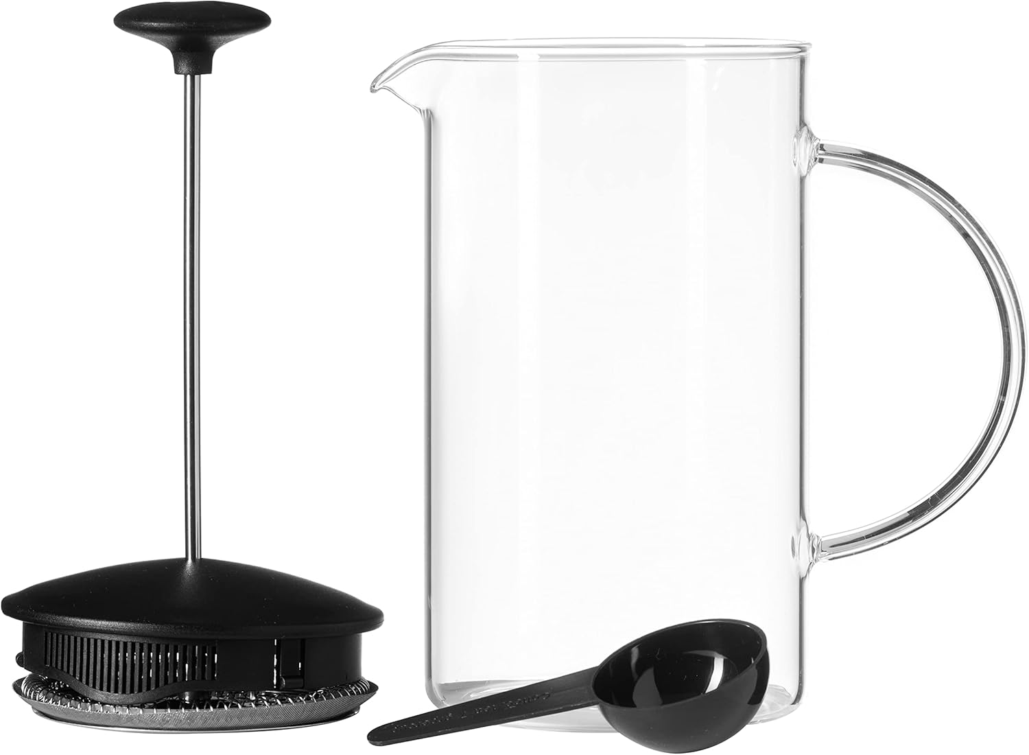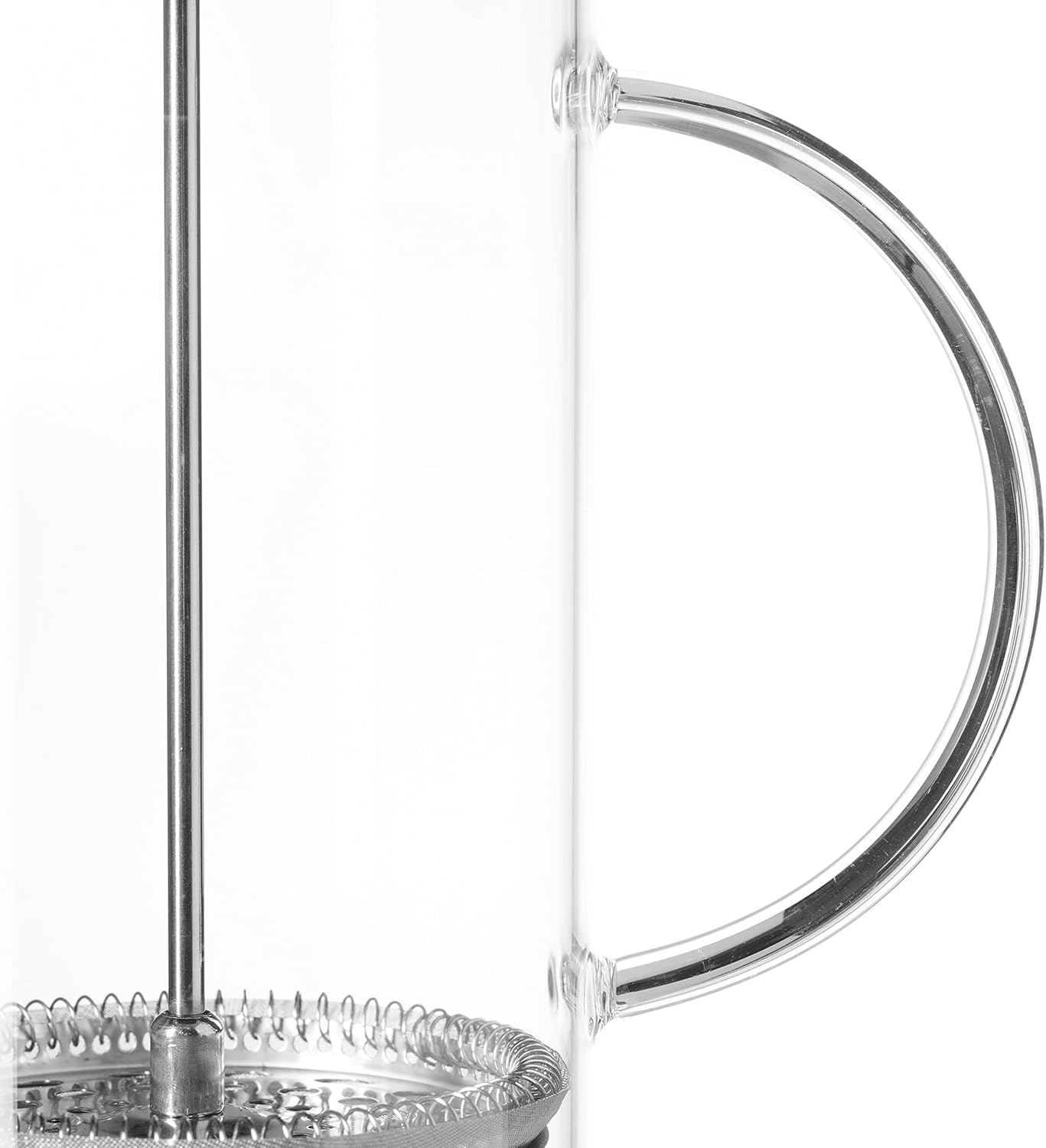 Kaffee in Perfektion: Genießen Sie aromatischen und vollmundigen Kaffee mit dem Kaffeebereiter für eine erstklassige Brühmethode Hochwertige Materialien: Hergestellt aus hitzebeständigem Borosilikatglas und rostfreiem Edelstahl für eine langlebige Leistung und einfache Reinigung Vielseitigkeit: Geeignet für verschiedene Kaffeemahlen, wie grob oder fein, und ermöglicht die Zubereitung von French Press Kaffee, Cold Brew oder Tee Stilvolles Design: Der Kaffeebereiter bietet eine moderne Optik und ist eine elegante Ergänzung für Ihre Küche oder Ihren Bürobereich Lieferumfang & Maße: 1 French Press aus Glas, Maße: 21 x 16,5 x 9,5 cm (HxB), 410 g, 1000 ml Nutzinhalt, 1200 ml randvoll | قیمت یورویی : 25.95€
