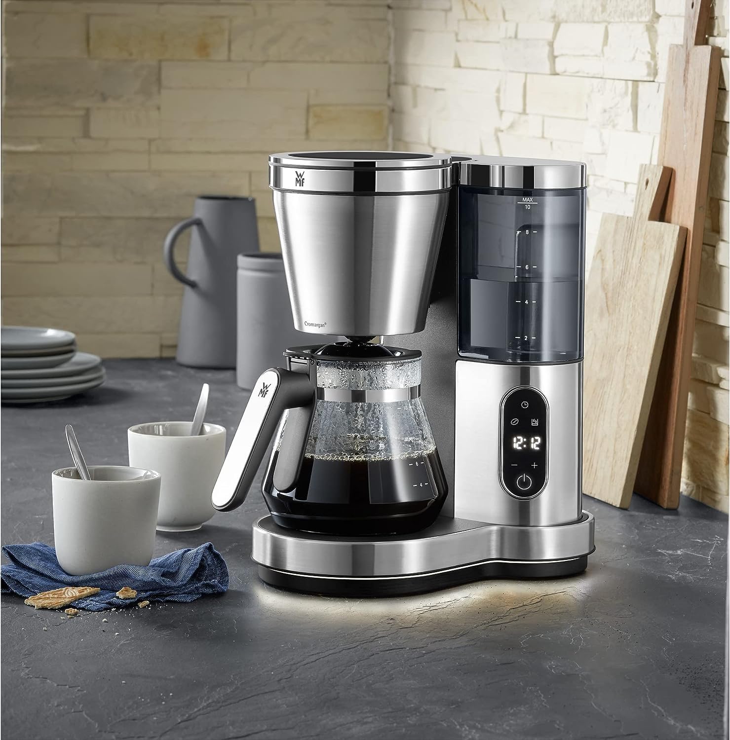 قهوهساز WMF Lono Aroma با قوری شیشهای با بدنهی استیل Cromargan®، قابلیت تهیهی ۱۰ فنجان قهوه و امکاناتی مانند تایمر، فیلتر قابل شستوشو و قوری شیشهای همراه، انتخابی ایدهآل برای استفادهی روزمره و مهمانیها است.